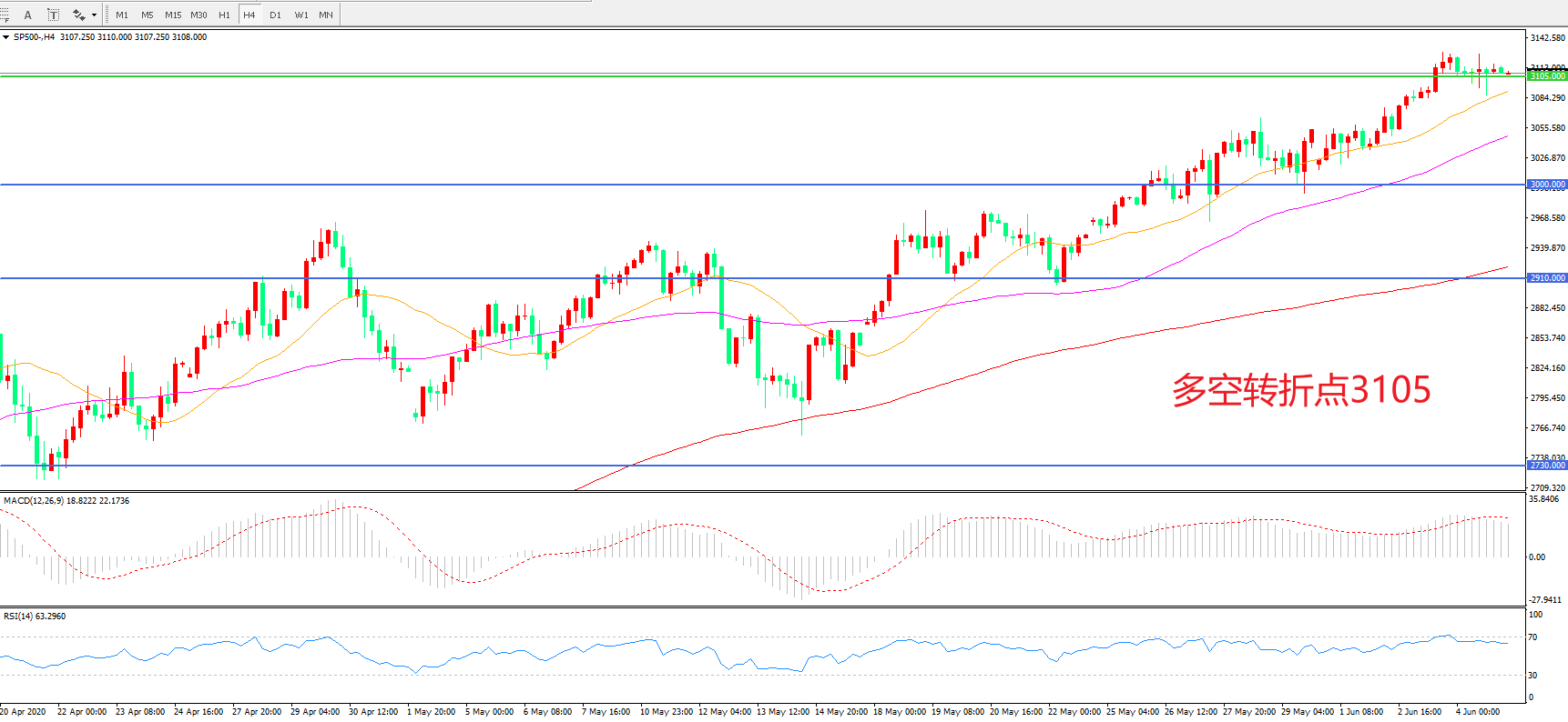 多空转折点:3105.00