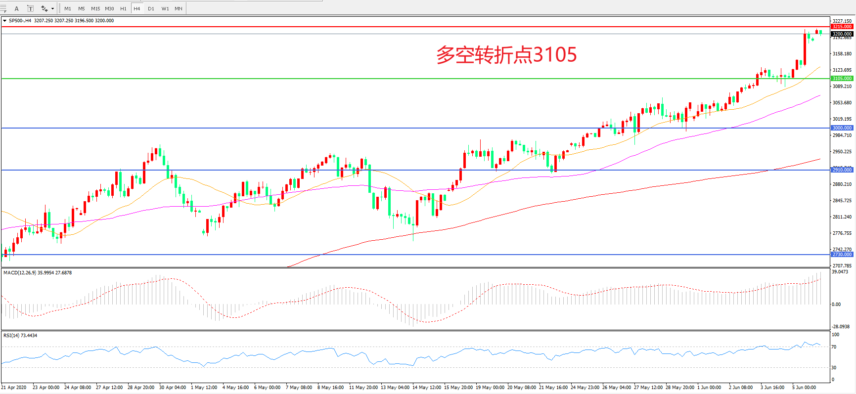 上周五(6月5日),美国非农业就业数据增加250万人,大幅好于市场预期,成为行情暴动的导火索,标普500大幅上涨,收报3186.25点。美国三大股指自疫情以来均出现了先大幅下跌再强劲反弹的走势,至6月5日,不仅收复了3月份以来的下跌失地,而且还在向历史高点逼近。