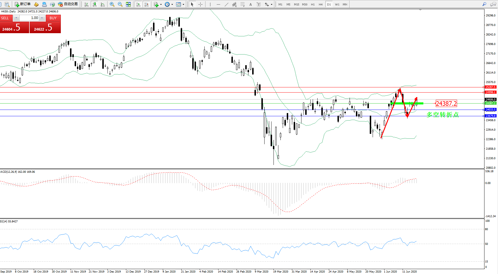 香港恒生指数619日(周五)收盘上涨178.95点,涨幅0.73%,报24643.89点;港股三大指数收涨,恒指国指盘中一度升超1%。本周累涨约1.4%。阿里概念股、系统软件板块涨幅居前。阿里影业涨9%,阿里健康涨超7%,协同通信涨超6%。港股三大指数收涨,恒指国指盘中一度升超1%。香港限聚令上限放宽至50人今日生效,促香港本地股集体走强,东亚银行涨超8%,港大零售涨超7%;生物科技、钢铁股回落明显,重庆钢铁跌近5%;汇付天下尾盘急升,大幅收涨52.17%。这将有助香港必需品消费零售及餐饮业务,加上政府将向永久性居民派发1万港币的补助,有助于带动整体零售市场的气氛及销售表现。