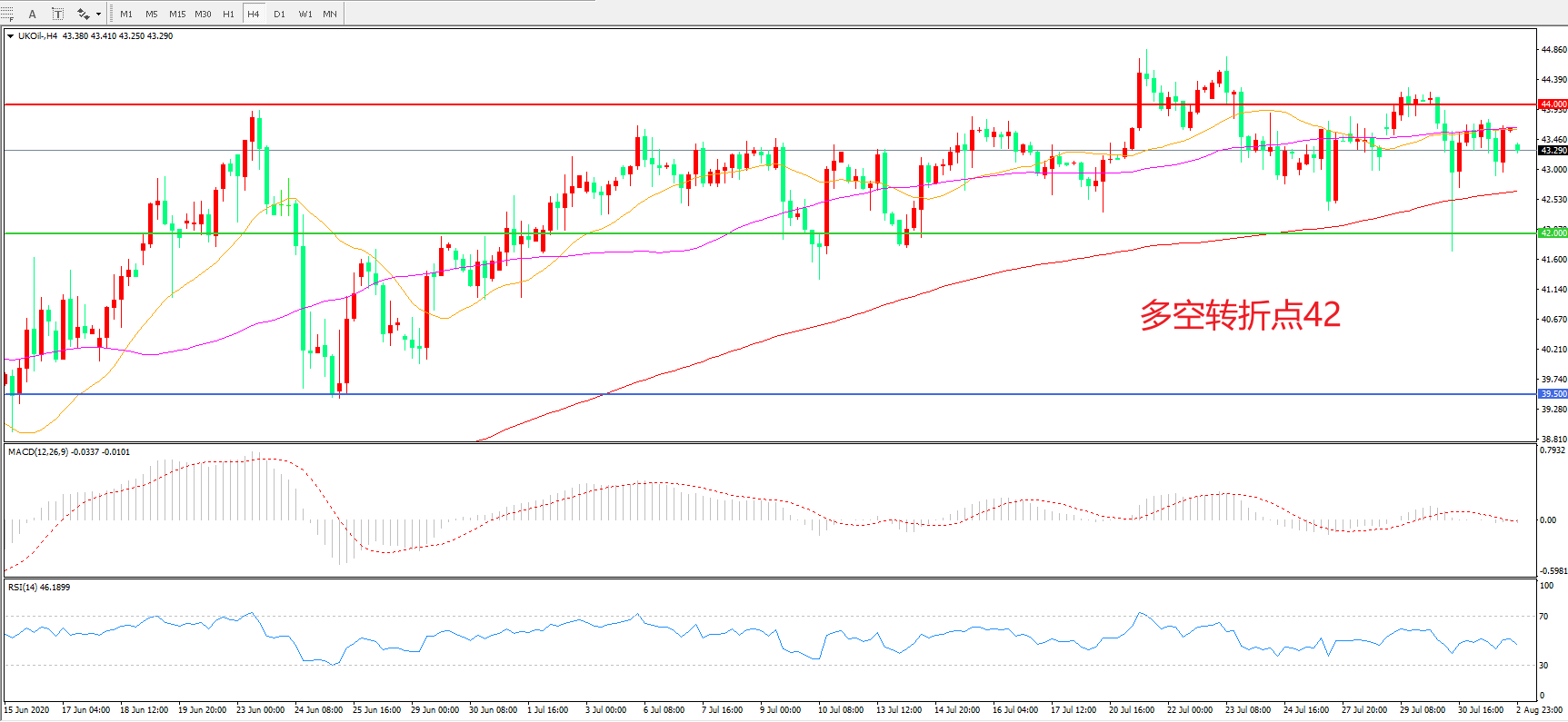 交易策略:  在42.00之上看涨,目标44.00      47.00