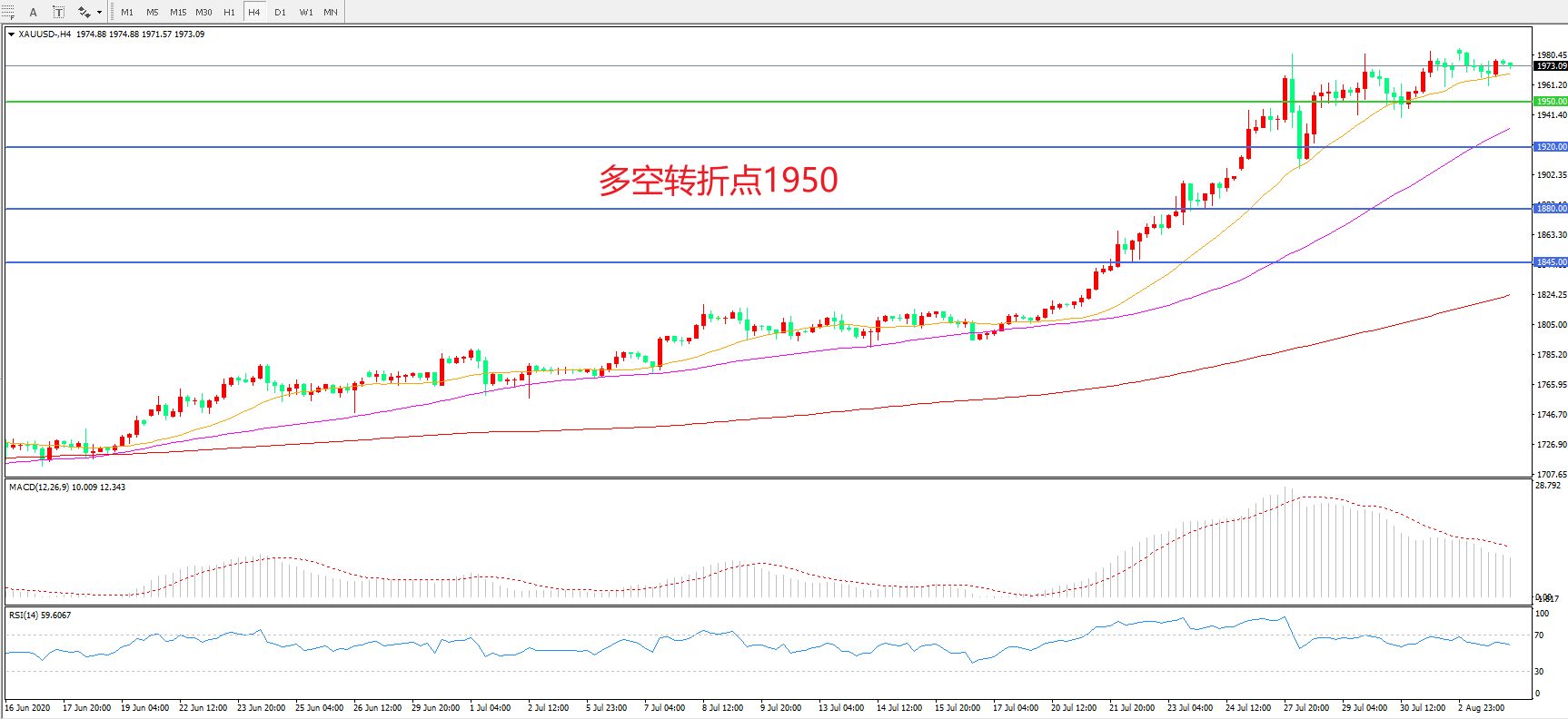备选策略:在1950.00之下看跌,目标1920.00 1880.00