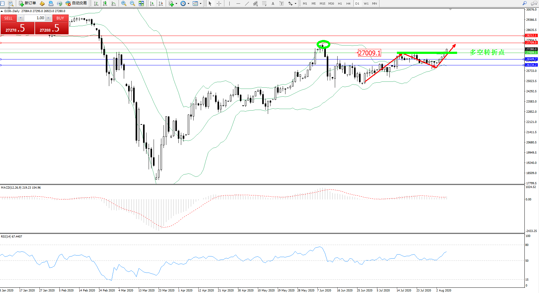 道琼斯指数8月6日(周四)收盘上涨185.50点,涨幅0.68%,报27386.98点。美国股市上涨,投资者乐观预期两党将就新的经济刺激计划达成协议。苹果公司领涨,股价再创新高。MSCI全球指数几乎全部抹去今年以来跌幅。过去一周,好于预期的财报季和新冠疫苗积极进展提振美股,但任何有关两党无法化解刺激计划分歧的风吹草动都令投资者不安。就新的防疫援助方案进行的谈判正在取得进展。但双方在周五最后期限前仍存在重大分歧。许多人认为这是夏季驾驶季节尾声阶段刺激美国需求的最后希望。在初请失业金人数数据公布后,美元指数大多数时间走势震荡。该数据显示上周美国初请失业金人数减少,但7月中旬有3130万人领取失业救济,暗示美国就业市场处于停滞状态。非农就业数据料将显示美国在7月份继续增加就业人口,不过步伐放缓。