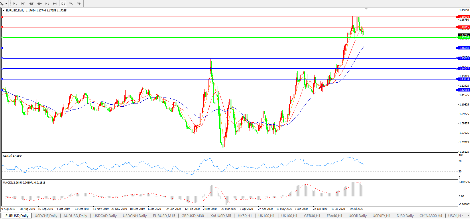欧元兑美元EURUSD   日线图: