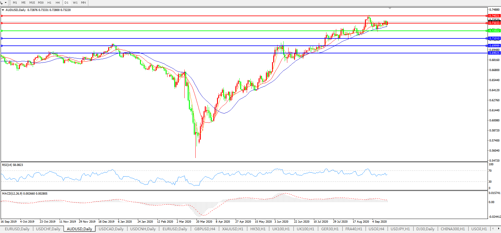 澳元兑美元AUDUSD    日线图: