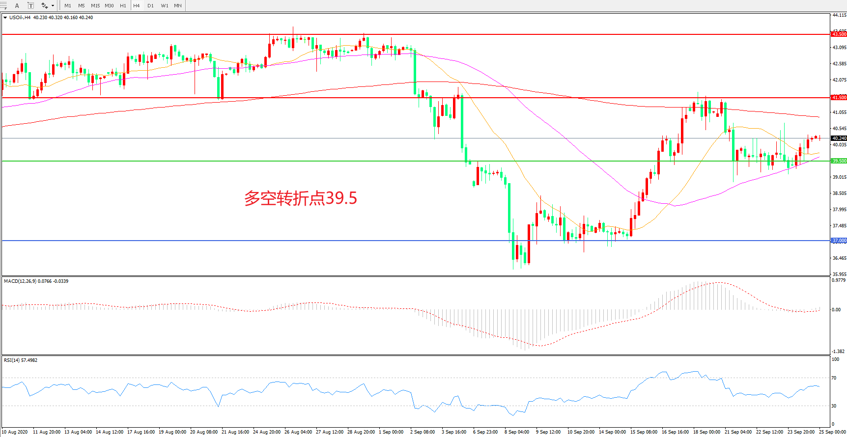 周四(9月24日),虽然新冠确诊病例增加令市场担心未来能源需求,但当周EIA原油数据表现良好,且美国有原油供应收紧迹象,美国WTI 原油受到提振,小幅反弹后收报40.31美元/桶。欧洲新增病例数再度上升会引发市场对需求和经济前景的担忧,继而推动美元上扬给油价带来明显压力,因为美元走强会降低以美元计价的石油对全球买家的吸引力。