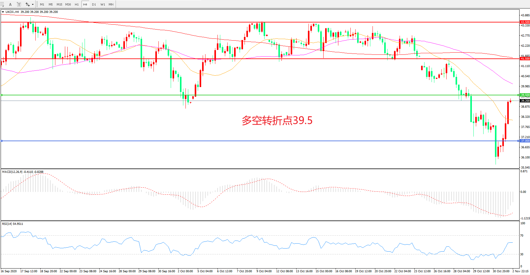 周一(11月2日),原油价格经历了超级大逆转!早盘布伦特原油开盘大跌5%,但晚间俄罗斯能源部长诺瓦克与石油公司就欧佩克+减产可能被推迟一事进行了谈话,随后布伦特原油抹去日内全部跌幅后涨幅进一步扩大,收报39.20美元/桶。此前普京曾表示,俄罗斯愿意推迟OPEC+的增产计划,阿联酋、科威特和伊拉克也在研究将当前减产协议延长至明年。