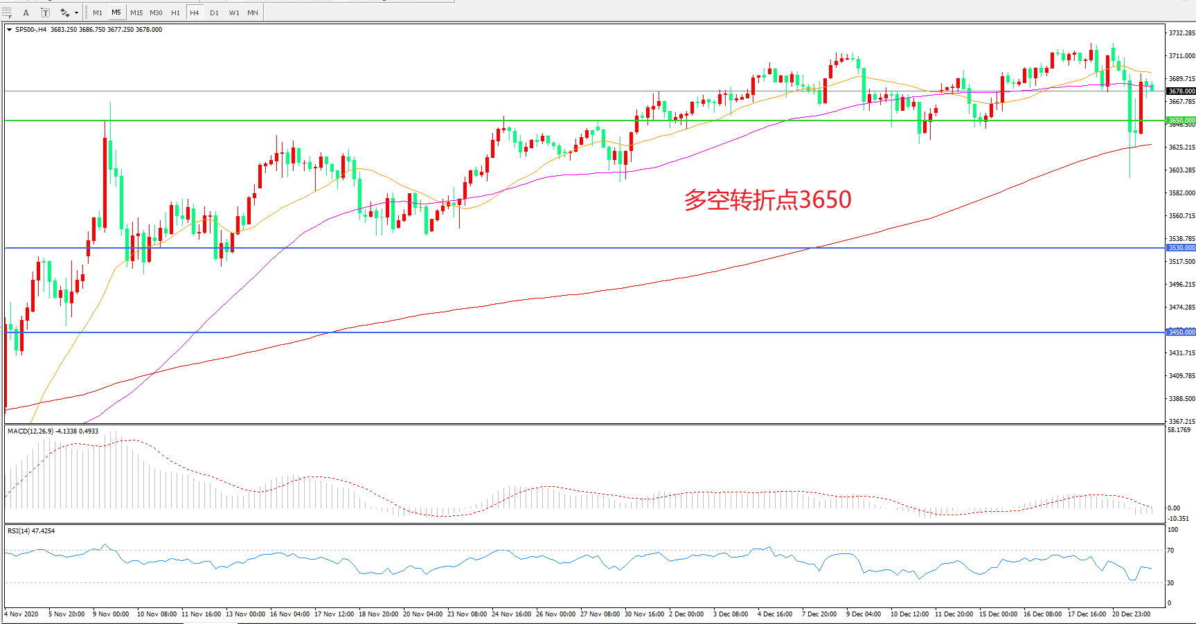 多空转折点:3650.00