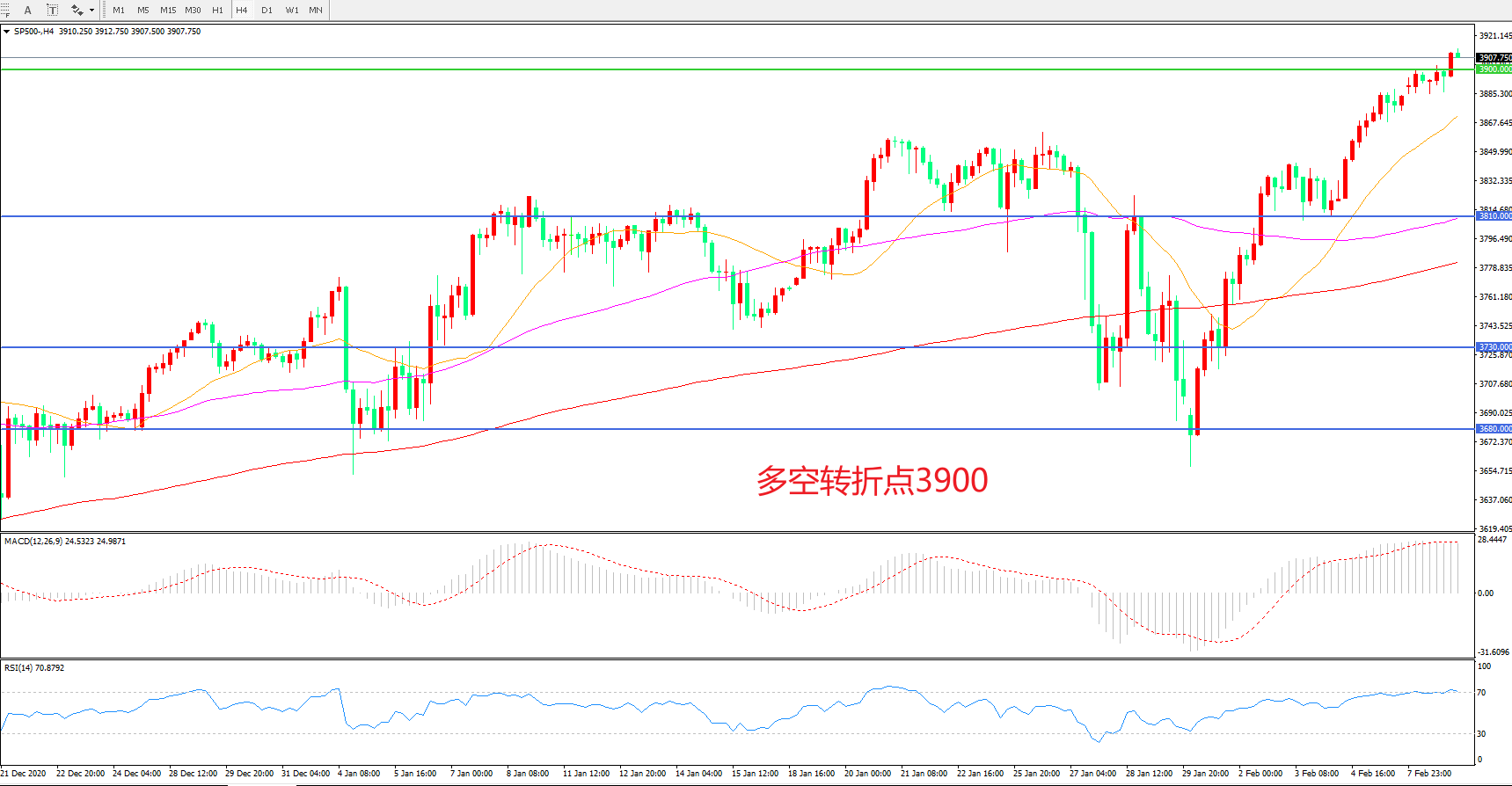 多空转折点:3900.00