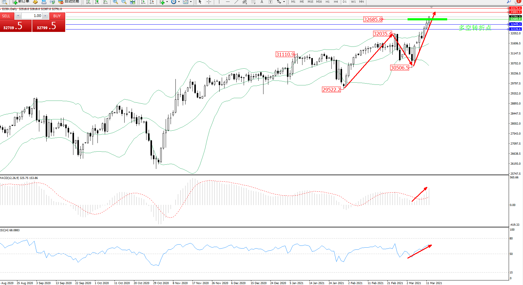 技术点评:多头动力延续布林带指标通道内宽幅震荡,延续上轨附近节点持续向上移动中,且多头动力未见止步迹象,布林带指标呈张口走势持续中,关注上轨附近节点,MACD指标处于多头区域维持震荡向上移拉升中,RSI指标处于多头区域不断向上移动中;