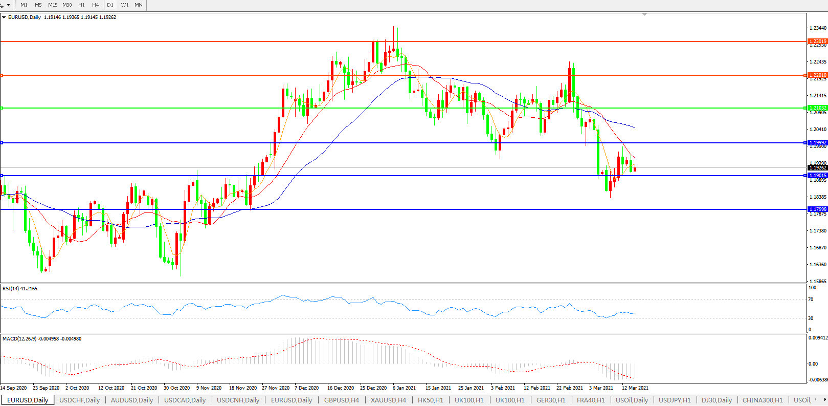 交易策略:1.2100下方看跌,目标1.2000、1.1900