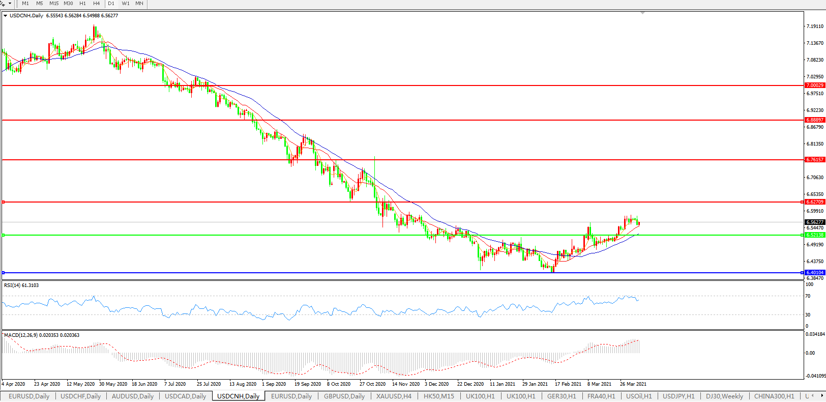 交易策略: 在6.5200之上,看涨,目标价位为6.6300,然后为6.7615。