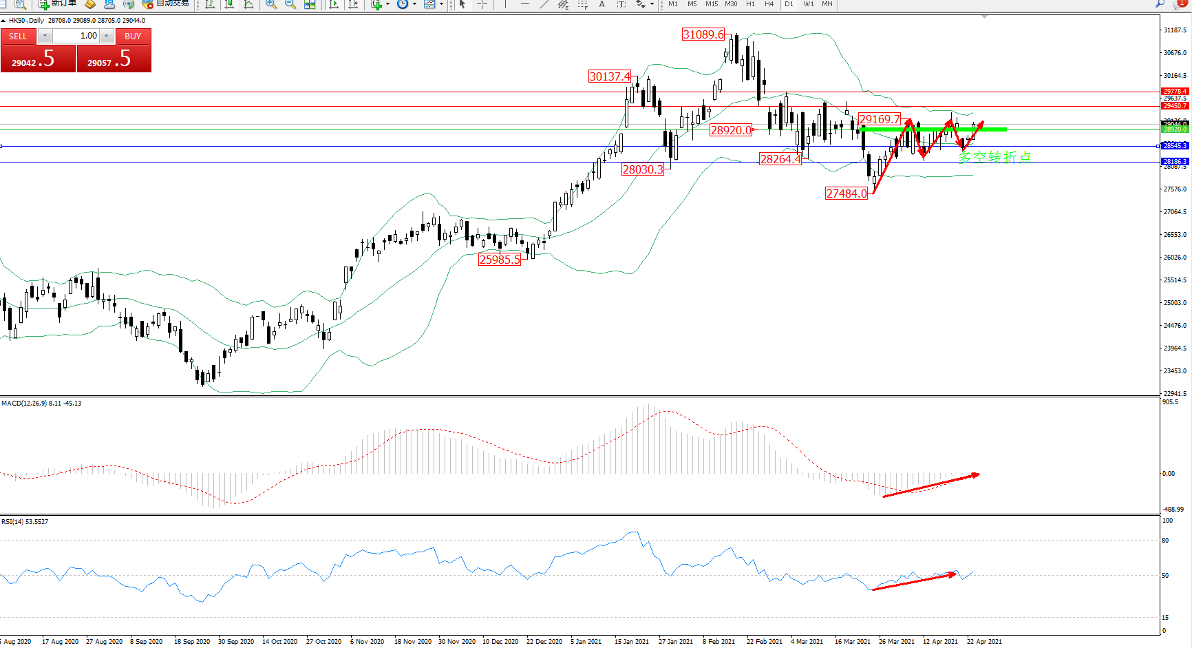 香港恒生指数4月23日(周五)收盘上涨323.41点,涨幅1.12%,报29078.75点;港股三大指数全线收涨,市场整体情绪回升。恒生科技指数涨2.27%报8467点。大型科技股集体回暖,美团、快手均涨近5%,网易涨4%,阿里巴巴、腾讯皆升超1%。烟草板块表现最差,内房股、博彩股、半导体股全天弱势。恒达科技控股再度大涨95%,昨日该股暴涨324%,两日股价翻近10倍。大市成交额为1429亿港元,南下资金净流入46.15亿港元。南向资金今日净流入34.17亿港元。港股通(沪)方面,腾讯控股净买入3.31亿港元,中国移动净买入2.12亿港元。港股通(深)方面,美团-W净买入14.09亿港元,舜宇光学科技净买入4.43亿港元。中共中央政治局常委、国务院副总理、粤港澳大湾区建设领导小组组长韩正22日在广州主持召开粤港澳大湾区建设领导小组会议,深入学习贯彻习近平总书记重要讲话精神,研究部署粤港澳重大合作平台建设有关政策落实等工作。要抓好主要任务,建立共商共建共管的体制机制,尽最大努力聚焦优势领域发展新产业,构建横琴与澳门一体化高水平开放的新体系。要深入推进高水平对外开放,深化与港澳服务贸易自由化,提升法律事务对外开放水平,更好参与国际合作。同时,香港和深圳在科技创新领域的互补性很强,要积极做好相关对接工作,规划建设好河套深港科技创新合作区。