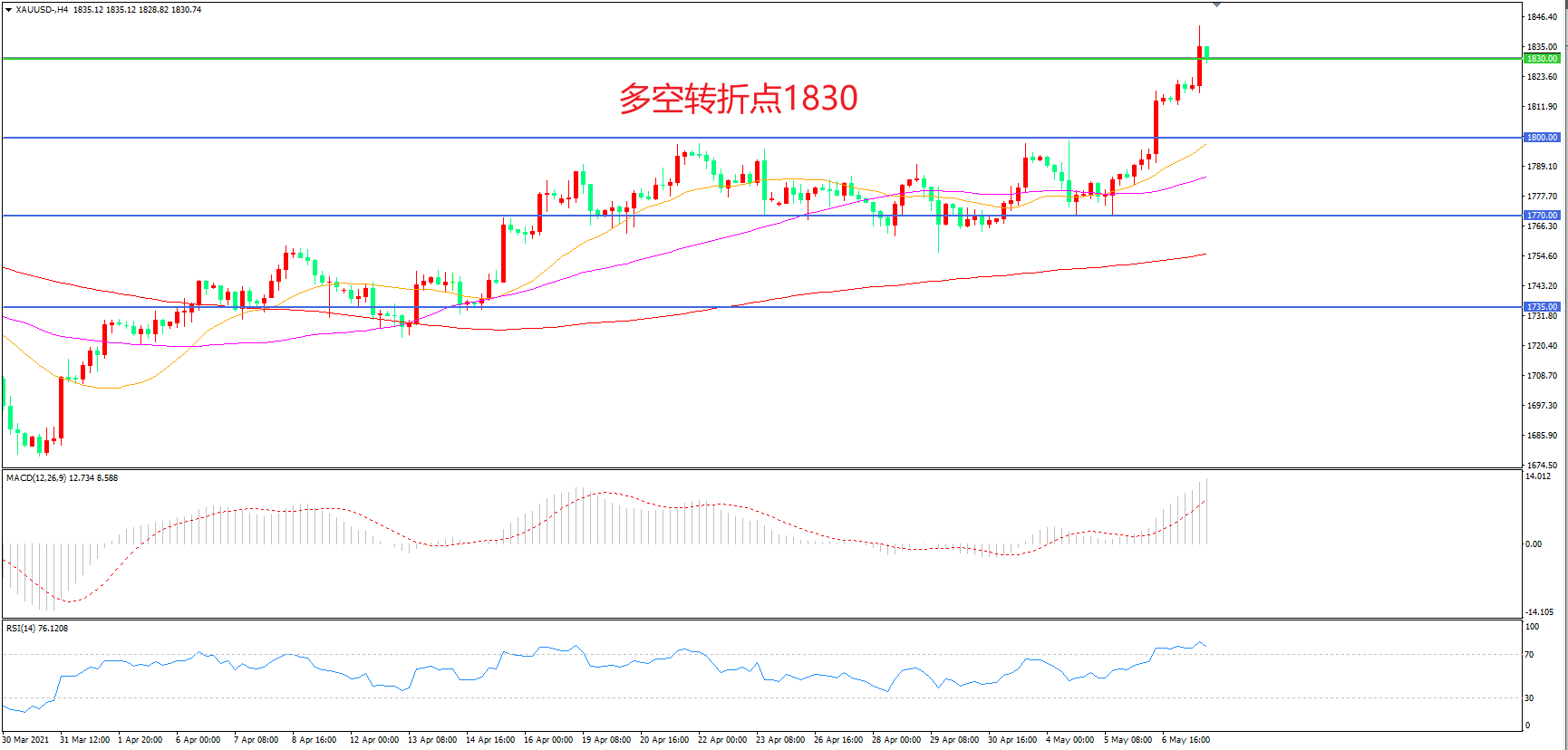 多空转折点:1830.00