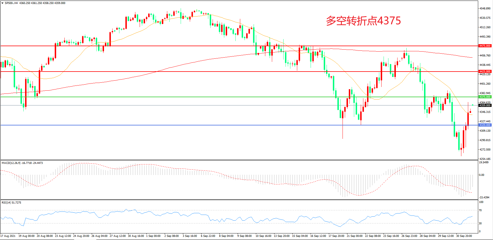 多空转折点:4375.00