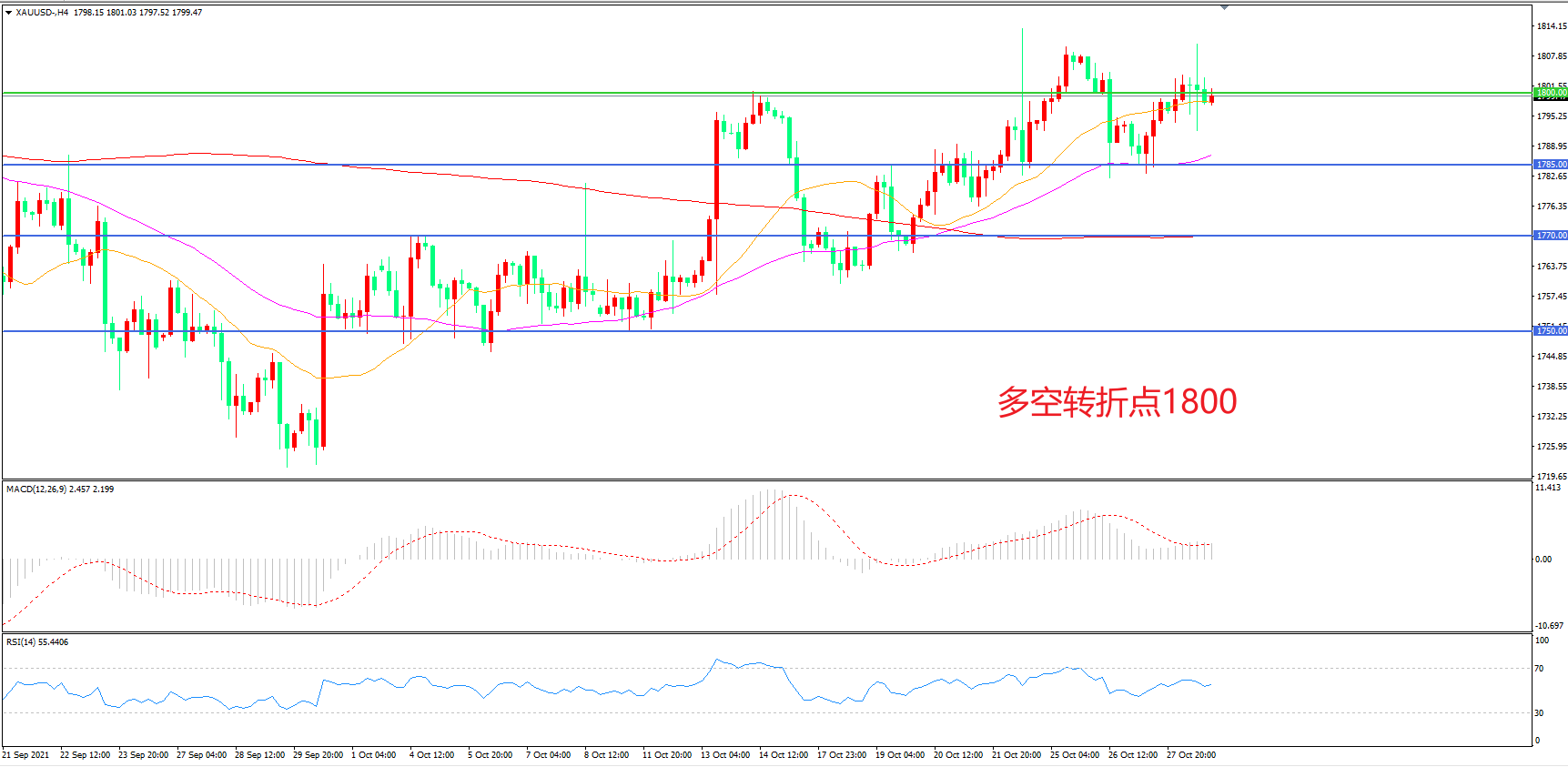 多空转折点:1800.00