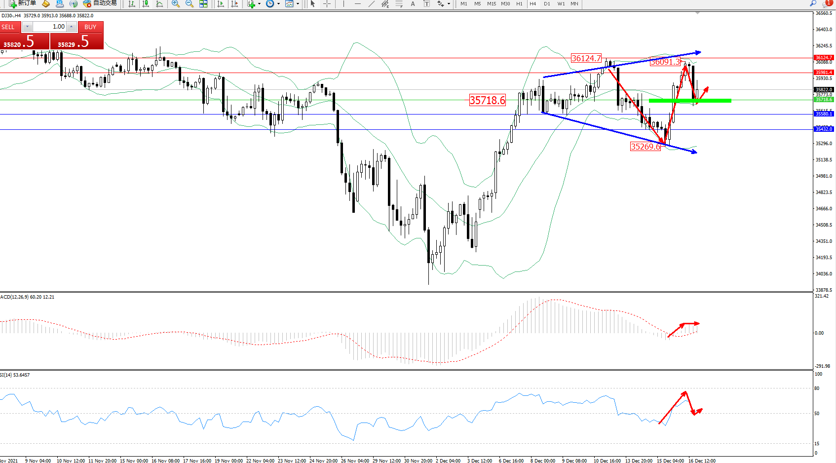 道琼斯指数12月16日(周四)收盘下跌30.78点,跌幅0.09%,报35896.65点;美股收盘,道指初步收跌,在英国和欧洲央行会议后,美联储长期政策前景被重新评估。10年期以内收益率下跌,5年期收益率下跌超过7个基点,因为短期利率期货定价美联储明年之后加息可能性降低。20年期和30年期收益率从盘中高点回落,收盘基本持平。美东时间下午3点后,5年期国债收益率下跌7.5个基点,至1.17%附近,自12月3日以来首次低于50日均线;该收益率周三升至1.296%,因美联储预计明后两年各加息3次。