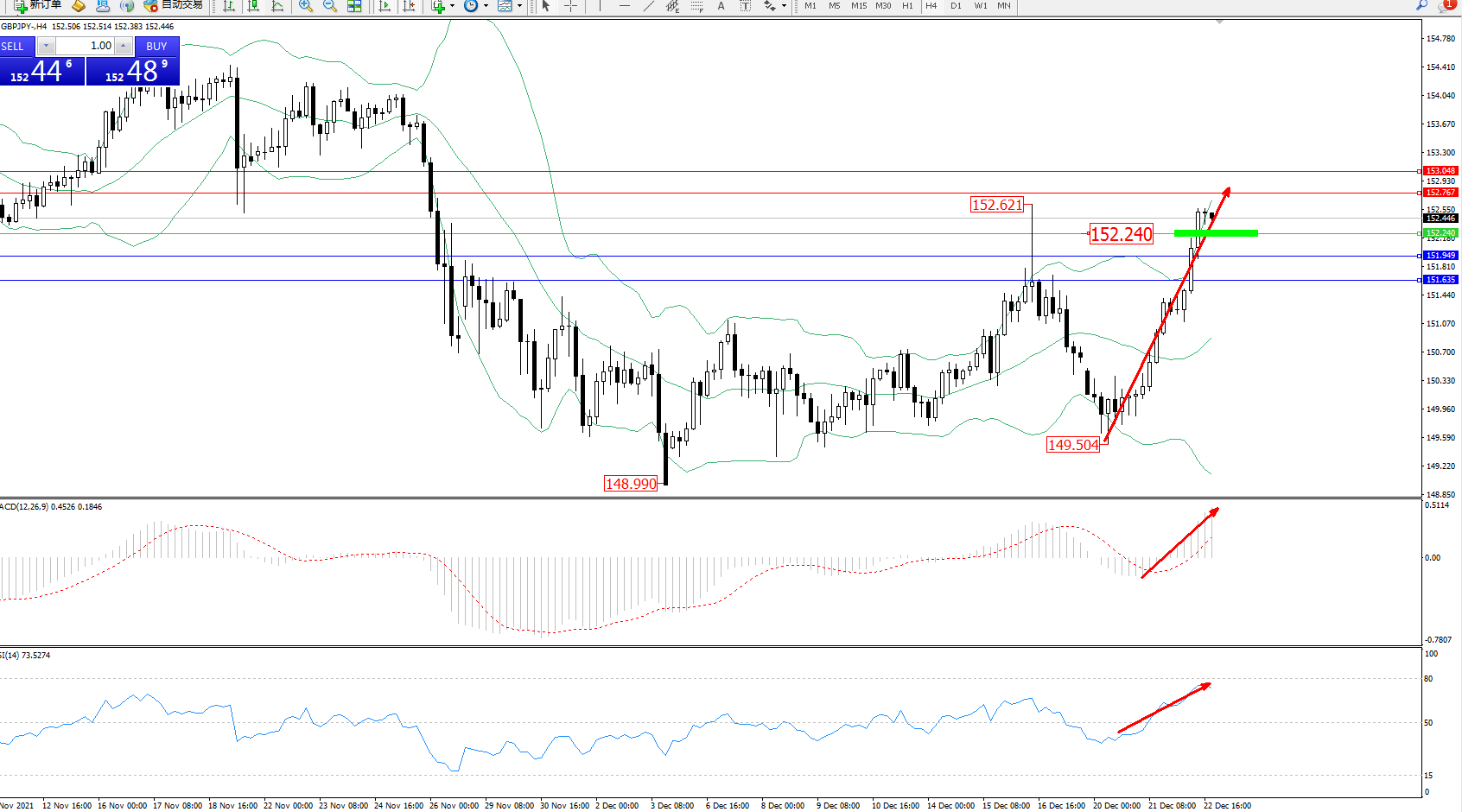 技术点评:低位多头动力强势震荡上扬,延续布林带指标上轨附近不断拉升中,前期高位152.621位置近在咫尺破位在即,布林带指标呈张口走势态势良好,MACD指标低位多头动力维持震荡上扬,RSI指标持续震荡上扬,即将触及超买区80均衡线附近;
