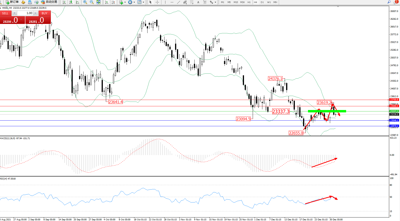 交易策略:23337下方看跌,目标23048、22870