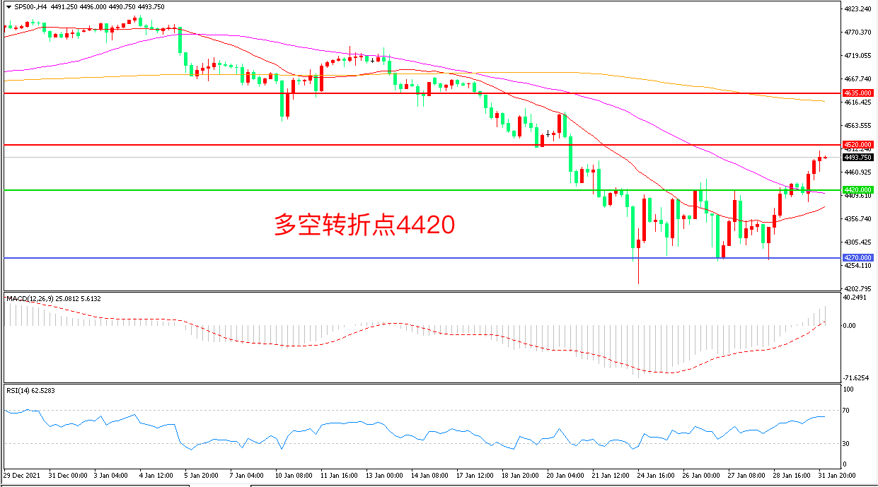 交易策略:在4420.00之上看涨,目标4520.00 4635.00