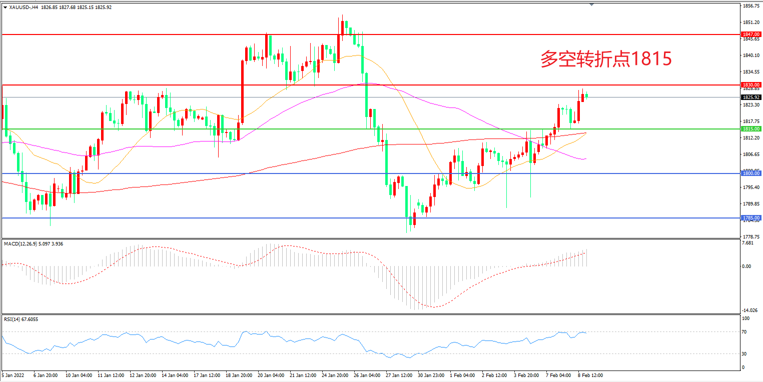 交易策略:在1815.00之上看涨,目标1830.00       1847.00