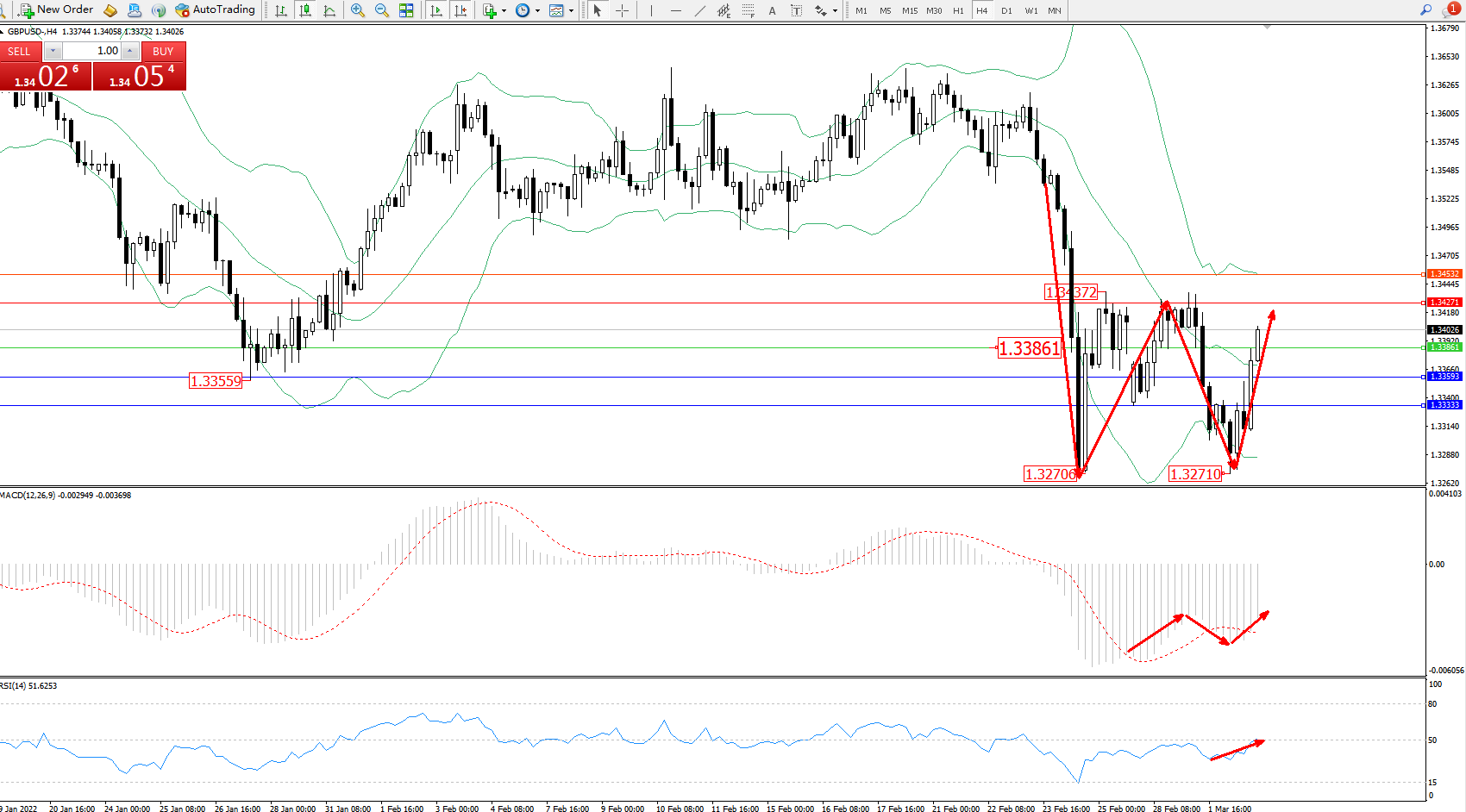 英镑兑美元维持1.34026附近震荡,英国主要零售商上月的涨价幅度为2011年以来最大,进一步显示通胀正在迅速上升。英国央行正试图以升息应对通胀上升。2月商店物价较上年同期上涨1.8%,为2011年11月以来最快年增速,1月为上涨1.5%。BRC的商店物价通胀指标通常远低于英国央行追踪的消费者物价通胀率,在过去一年的大部分时间里,BRC这项数据显示物价同比下降。英国的消费者物价通胀率在1月触及5.5%的30年高点,并料将在4月国内电费跳涨时升逾7%。