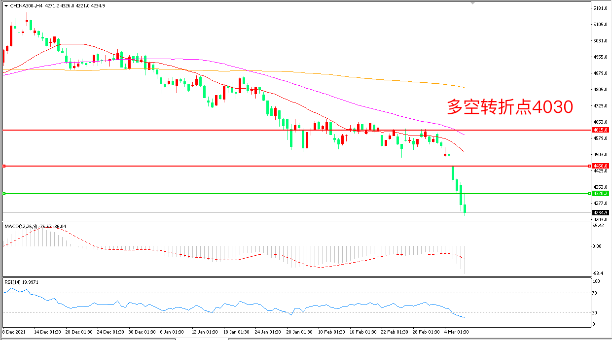 周二(3月8日),受到隔夜欧美股指下挫影响,两市股指集体低开,沪指跌幅超过2%,失守3300点,沪深300低开低走,收报4234.9点。指数再度破位,A股盘面隐隐有崩盘迹象,市场情绪已接近冰点,指数下行共振下,短期仍有反复,空头牢牢掌握局面时切忌博弈反弹。