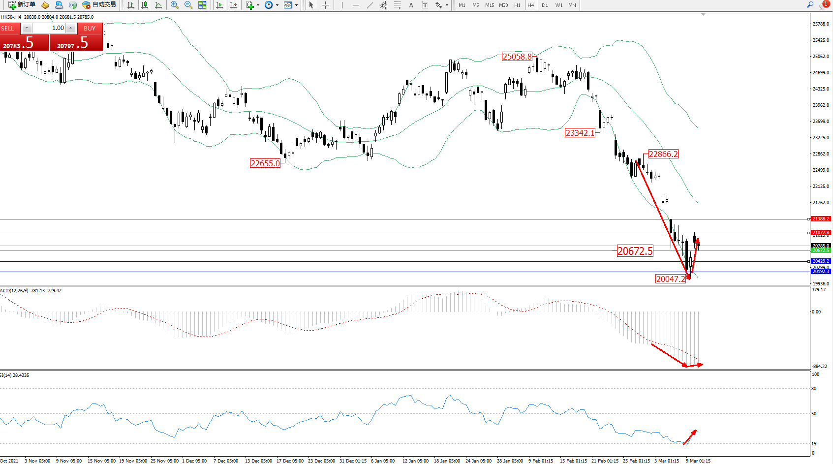 香港恒生指数3月10日(周四)收盘上涨262.55点,涨幅1.27%,报20890.26点;俄乌局势出现转机,全球金融市场齐反弹。港股三大指数均收涨,恒生科技指数涨0.97%,盘中一度翻绿,全天大幅震荡4.58%。市场情绪小幅回升,大型科技股普遍反弹,避险板块跌幅明显,黄金股、有色金属股、石油股、煤炭股齐挫,今日南下资金净流入42.55亿港元,大市成交额为1462亿港元。外交部发言人赵立坚表示,中方欢迎一切致力于俄乌和平的外交努力,包括土耳其、俄罗斯、乌克兰三方外长会晤。我们注意到,这是一次外长级别的会晤,是俄乌双方自冲突以来级别最高的一次会晤。我们希望有关各方能够本着相互尊重的原则,能够相向而行,能够坐下来认真谈判,能够为和平解决危机作出积极努力。
