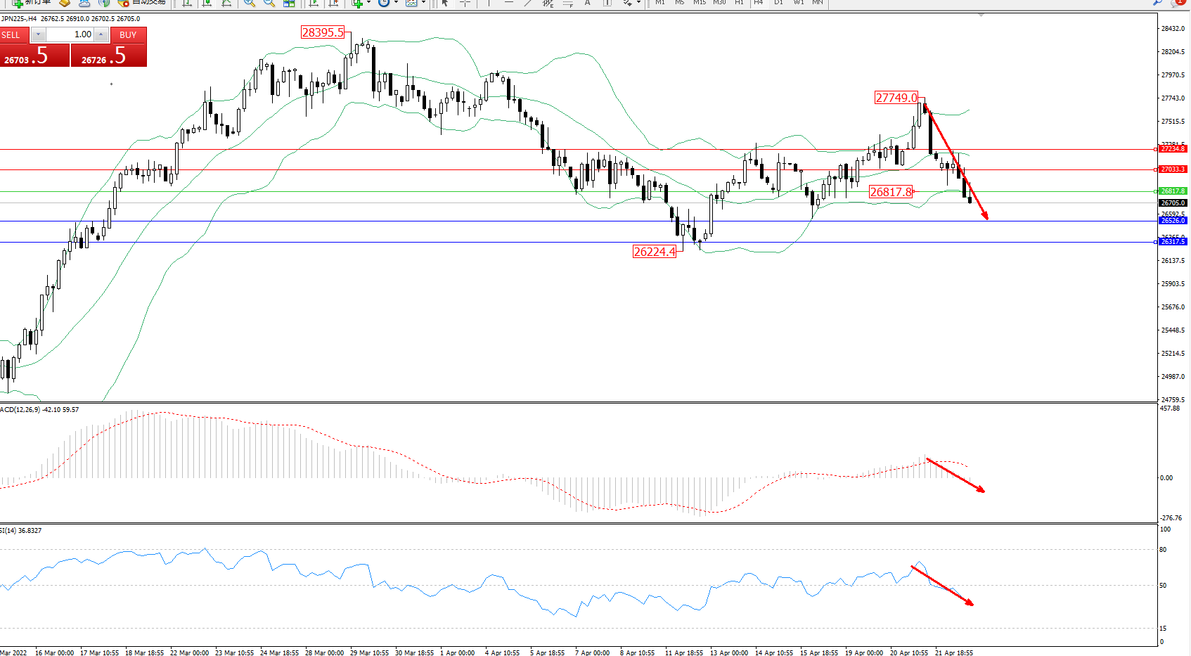 日经225指数4月22日(周五)收盘下跌446.06点,跌幅1.62%,报27107.00点。机构调查:日本2022财年核心CPI预期为1.7%(3月份调查为1.6%)。受访经济学家预测日本2021和2022财年GDP分别增长2.3%和2.5%(3月调查为2.3%和2.6%)。受访经济学家将日本1-3月年化GDP增长预测下调至-0.7%,4-6月上调至5.1%(3月调查分别为-0.3%和4.9%)。