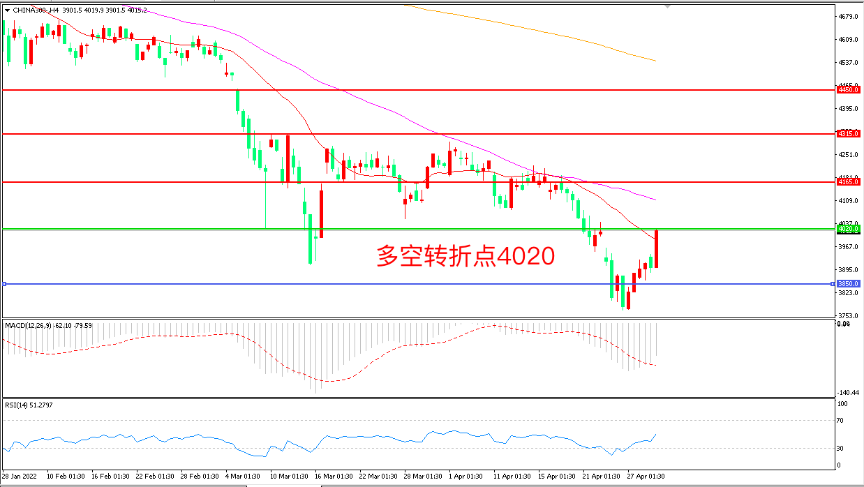 交易策略:在4020.00之上看涨,目标3850.00                3730.00