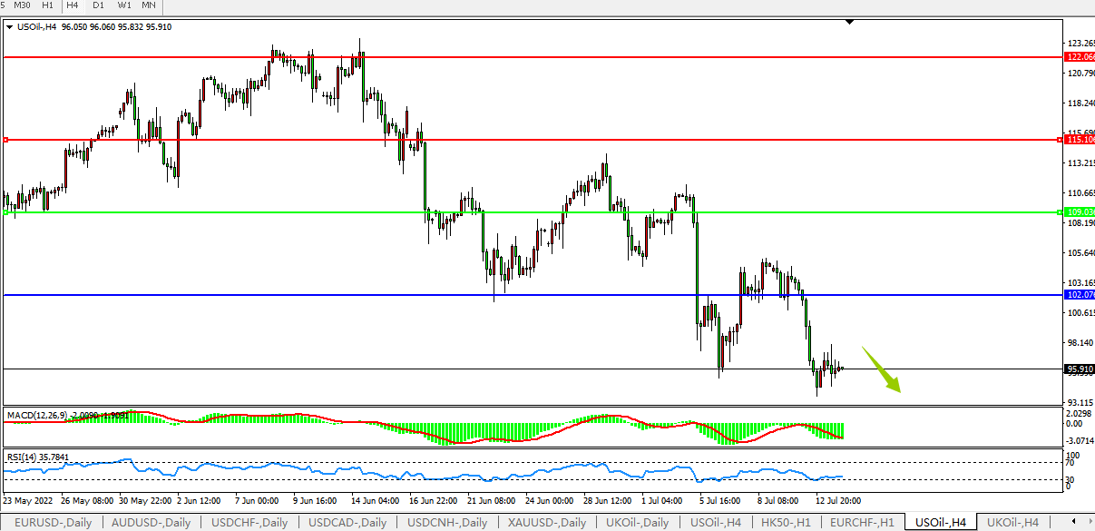 4小时图看:短线汇价持续弱势但存在反弹可能, MACD量能柱0轴下放量,RSI指标较为温和,短期反弹后再度走弱概率较大。