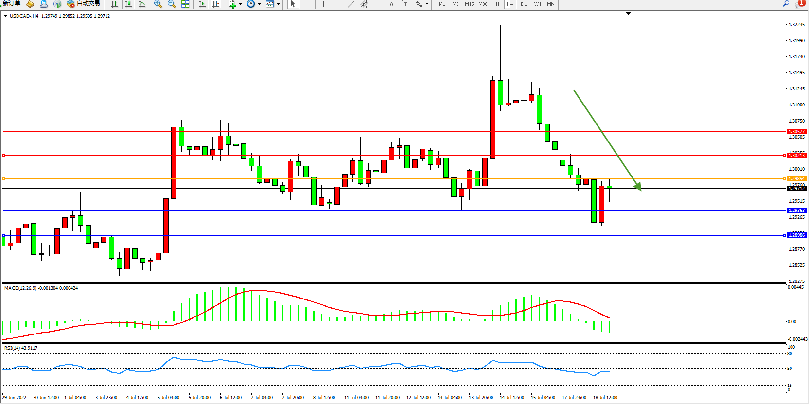 4小时图看:空头动力维持震荡下行走势态势良好,短期低位得到短期支撑回升,但下行趋势态势依旧,空头有继续向下移动态势,MACD指标处于0轴线下侧徘徊,RSI指标处于50均衡线下侧整理中;