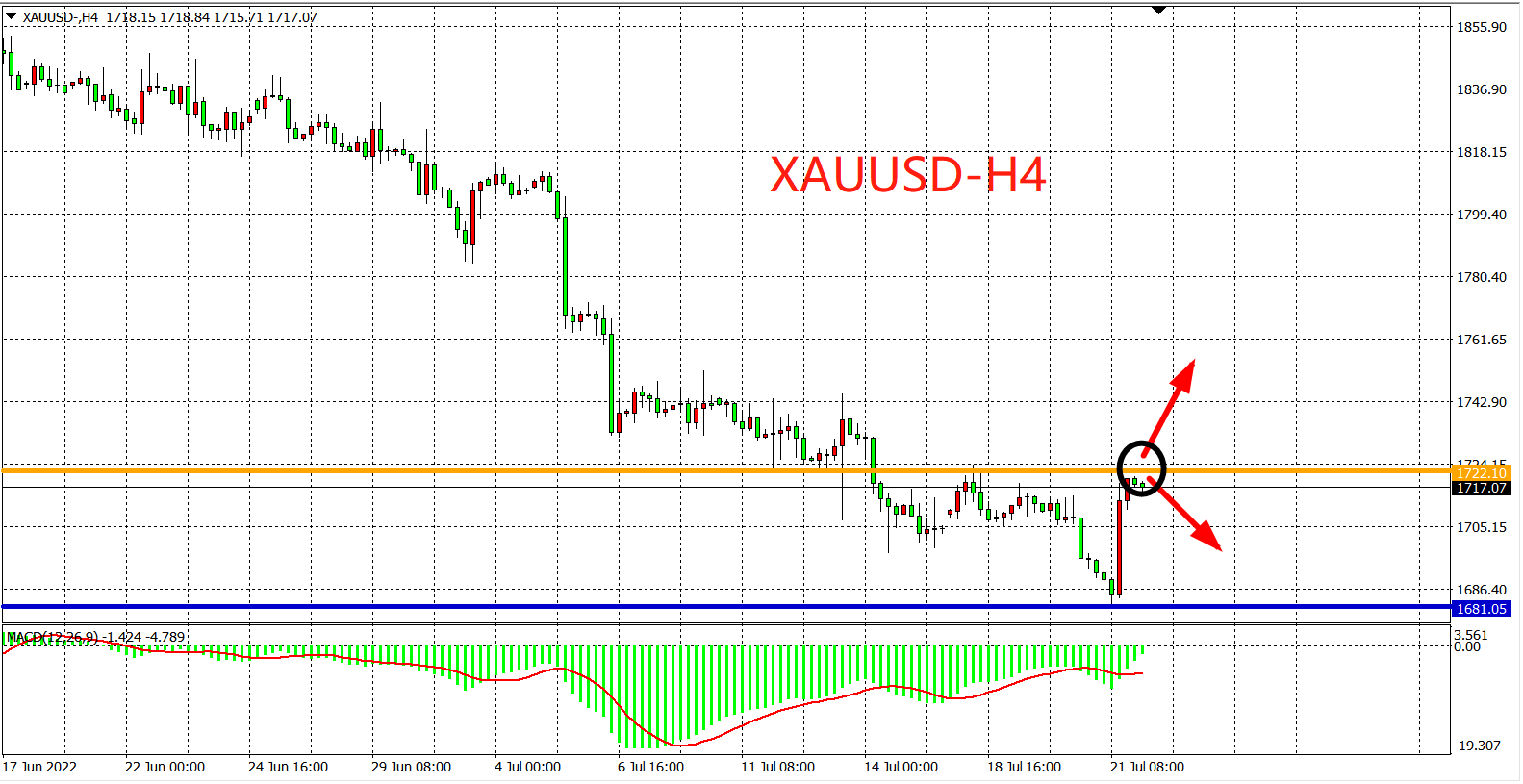 交易策略:在1722.00之下看跌,目标1700.00 1680.00