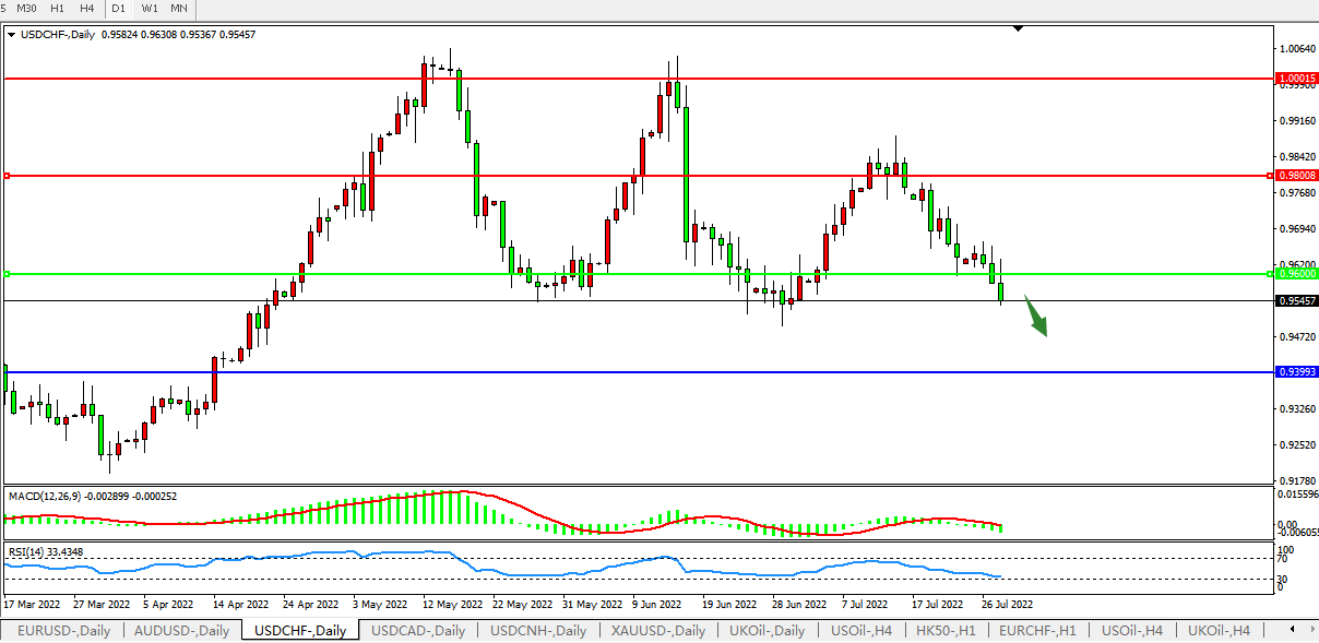 USDCHF:0.9600成为压制 USDCHF  USDCAD