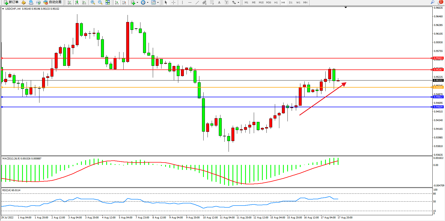 交易策略:0.95009上方看涨,目标0.95367、0.95603