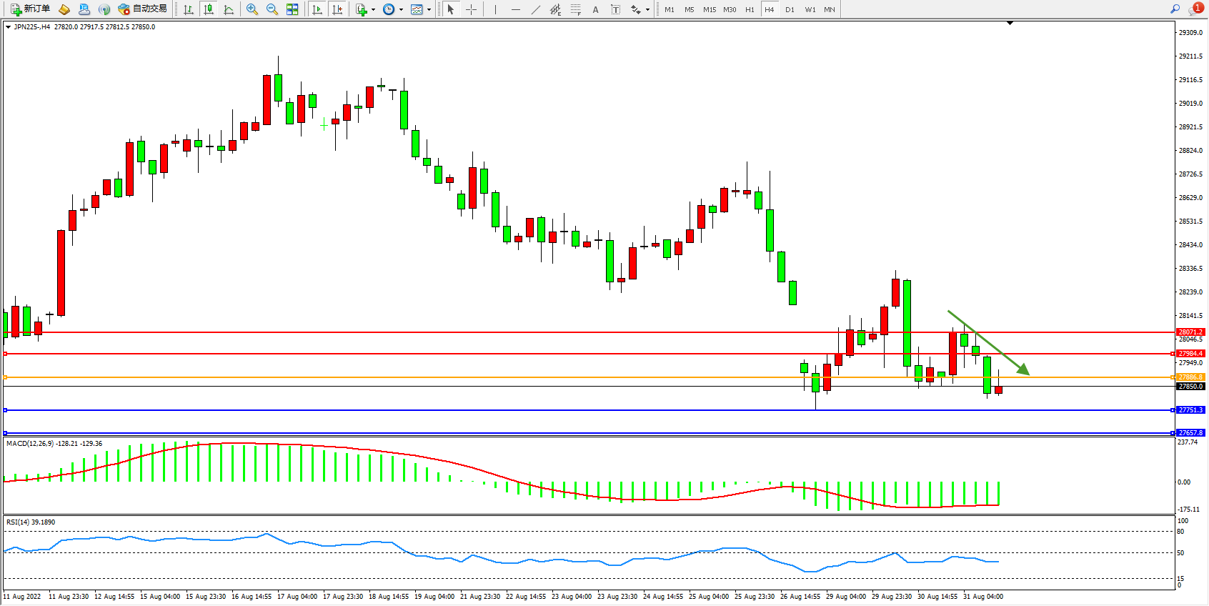 日经225指数8月31日(周三)收盘下跌127.08点,跌幅0.45%,报28068.50点。官方数据显示,7月经季调工业生产较前月增加1.0%,好于预估的下滑0.5%。上个月工业生产增幅接近两位数。日本7月工业生产连续第二个月增长,这标志着第三季制造业和更广泛的经济活动有一个积极的开端。