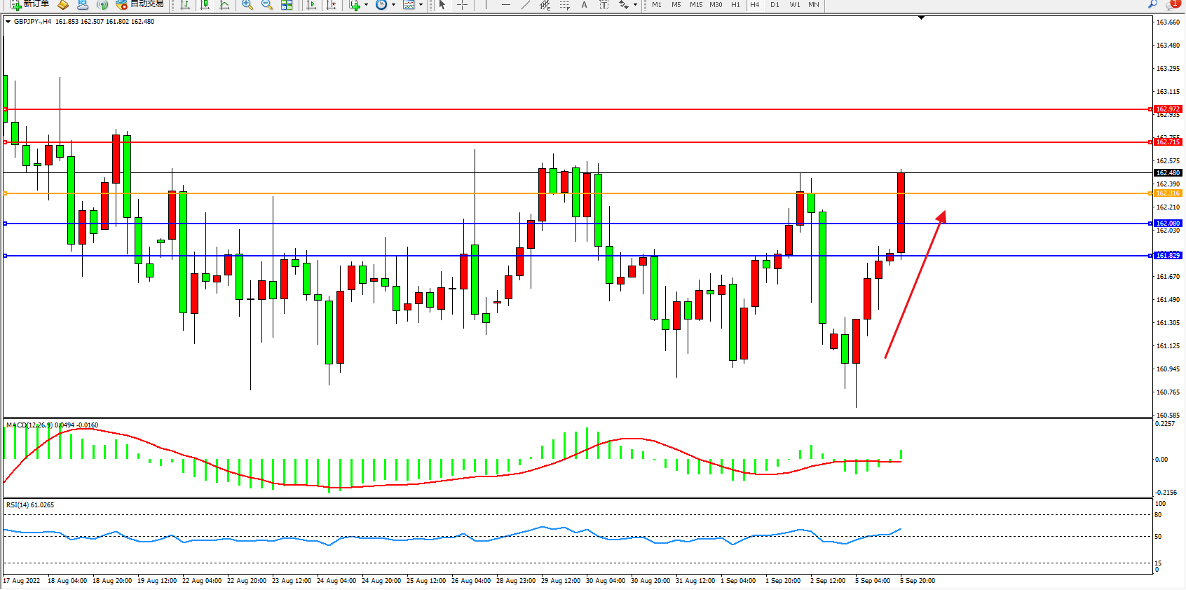 英镑兑日圆拉升至162.476附近震荡,英国外交大臣特拉斯赢得英国执政党保守党党魁竞选,将接替约翰逊成为英国下一任首相。特拉斯在竞选中赢得81326票,苏纳克赢得60399票。