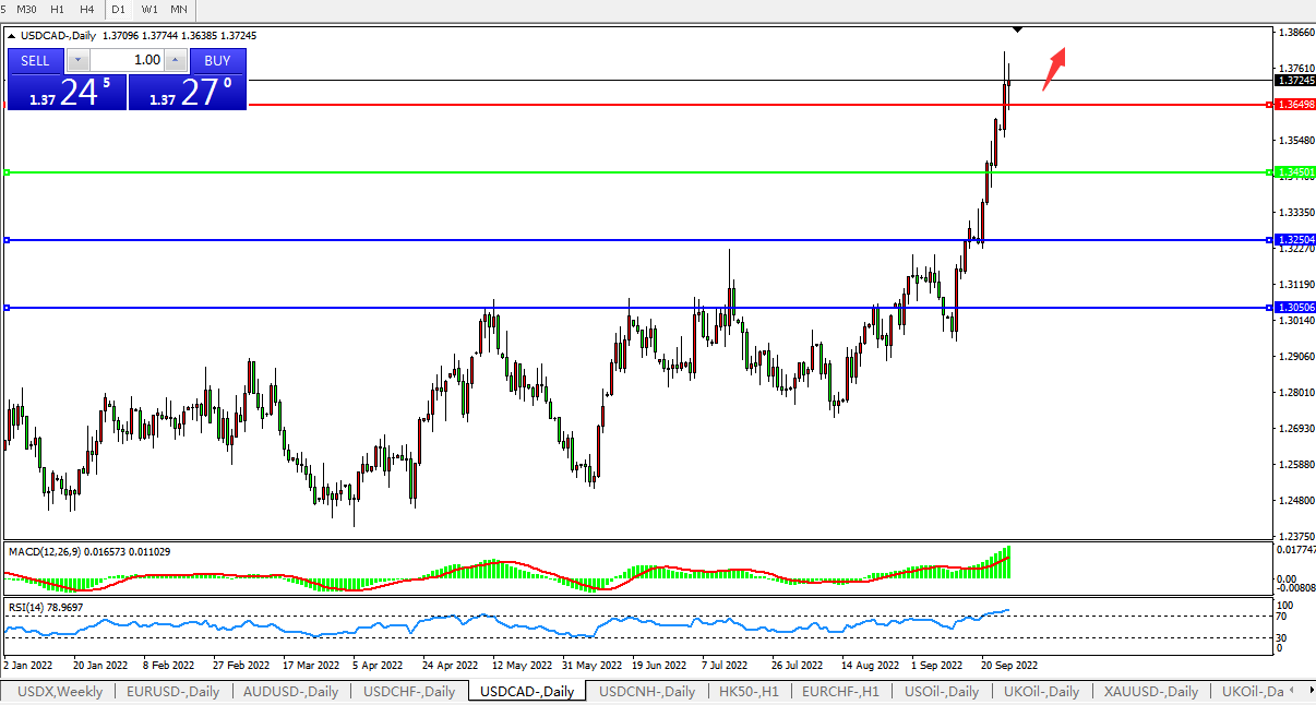 USDCAD:上攻渐显乏力 USDCAD  CADJPY
