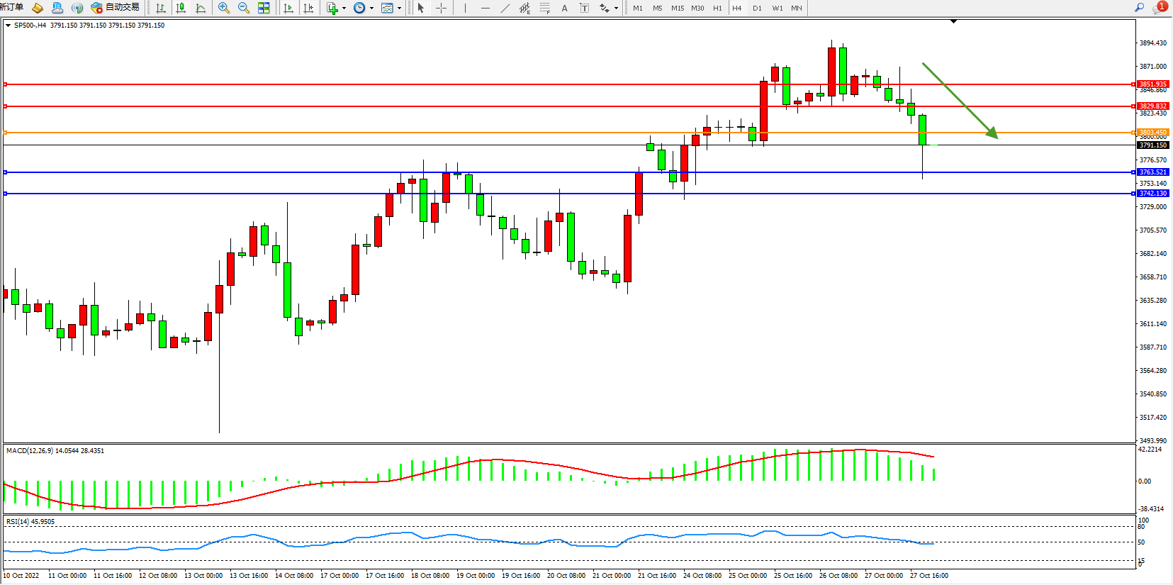 标普500指数10月27日(周四)收盘下跌21.10点,跌幅0.55%,报3809.50点;美国截至10月22日当周初请失业金人数实际公布 万人,预期22万人,前值21.4万人。美国9月耐用品订单月率初值实际公布 %,预期0.6%,前值-0.2%。