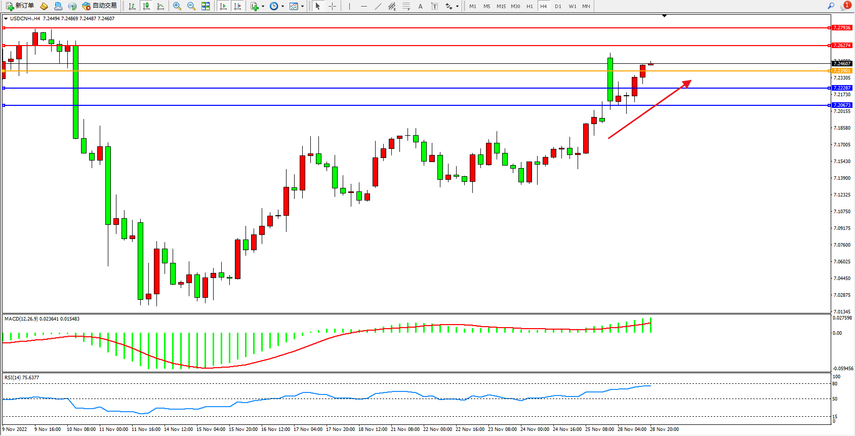 交易策略:7.23901上方看涨,目标7.26274、7.27936