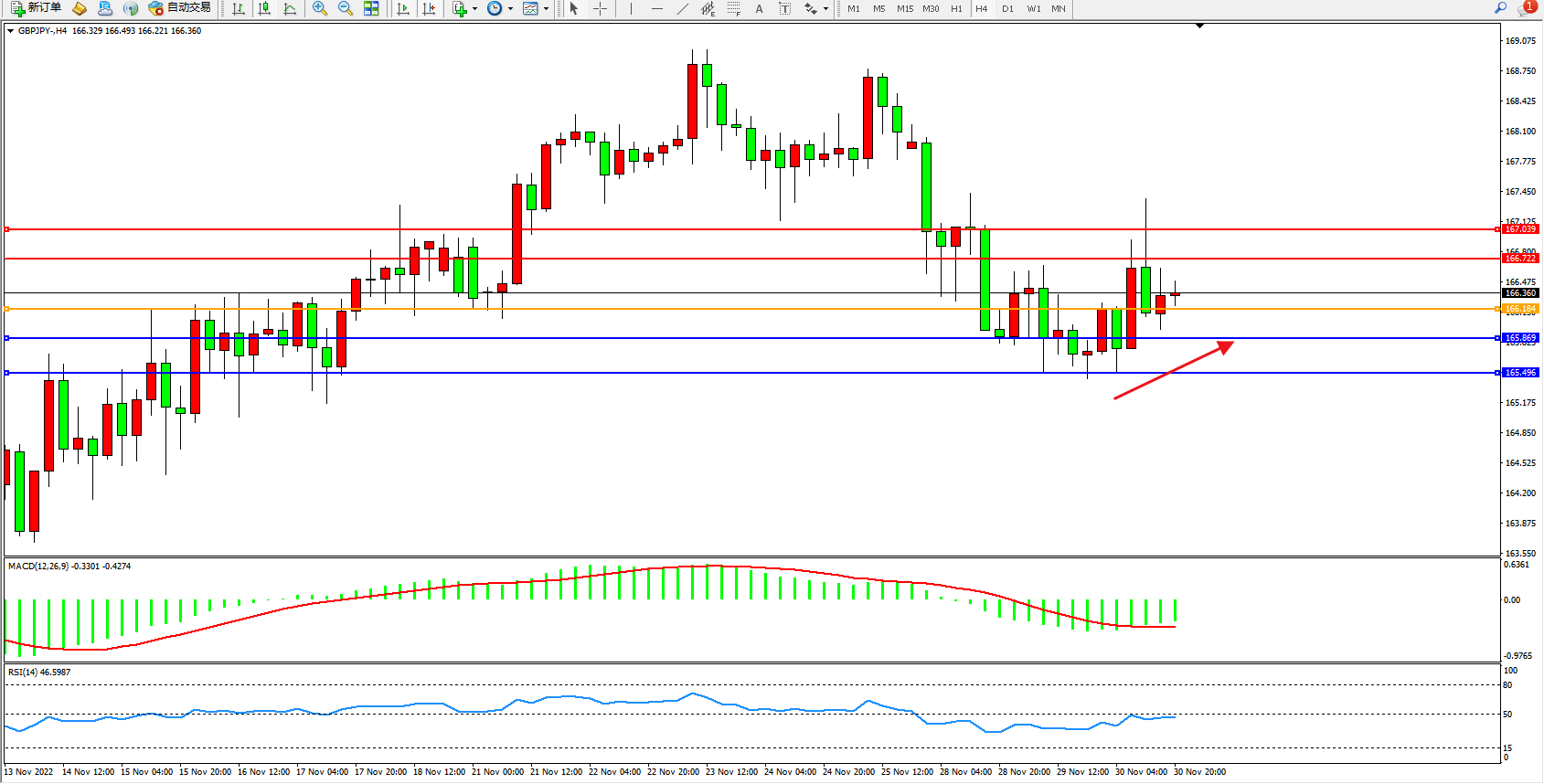 交易策略:166.184上方看涨,目标166.722、167.039