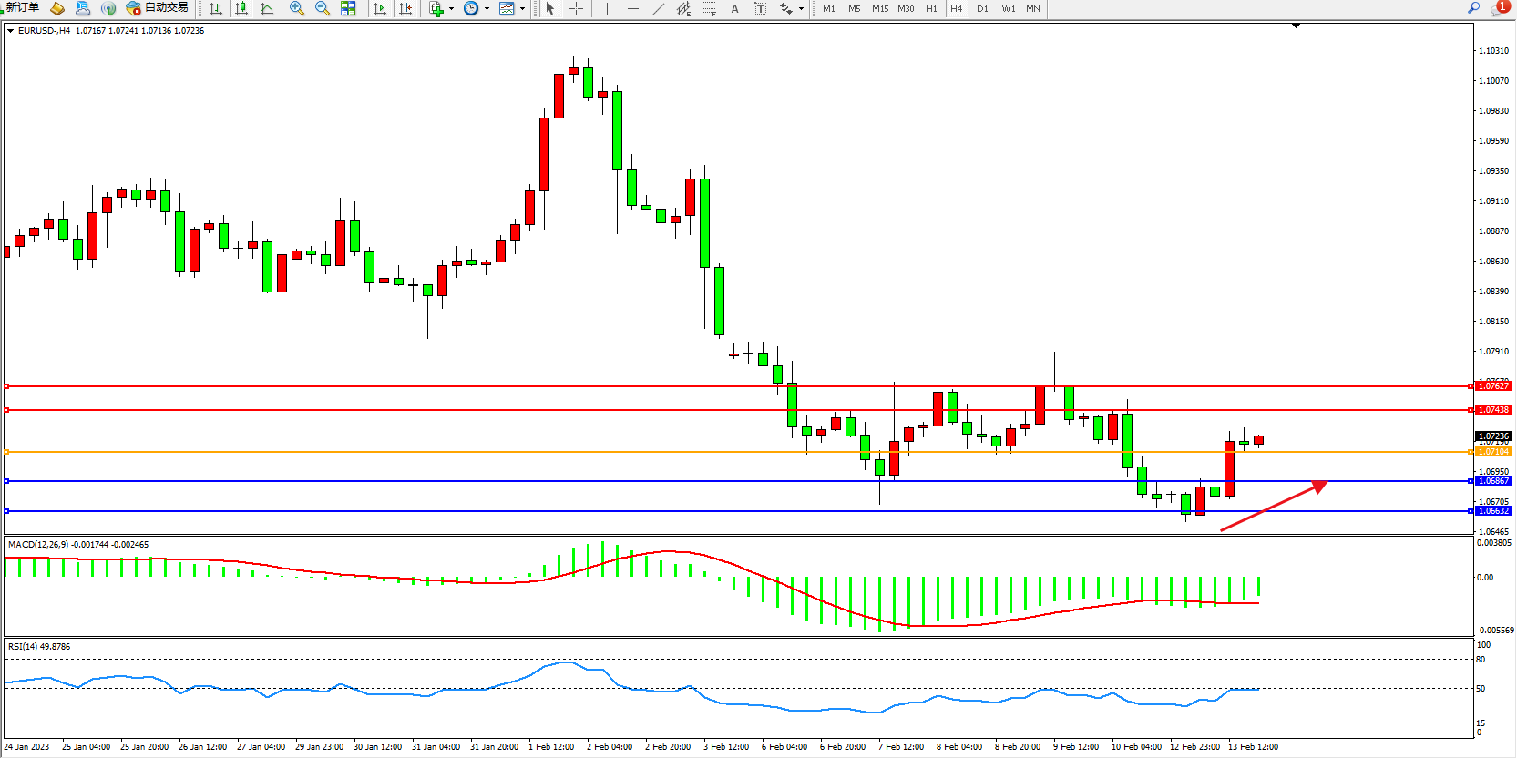 交易策略:1.07104上方看涨,目标1.07438、1.07627
