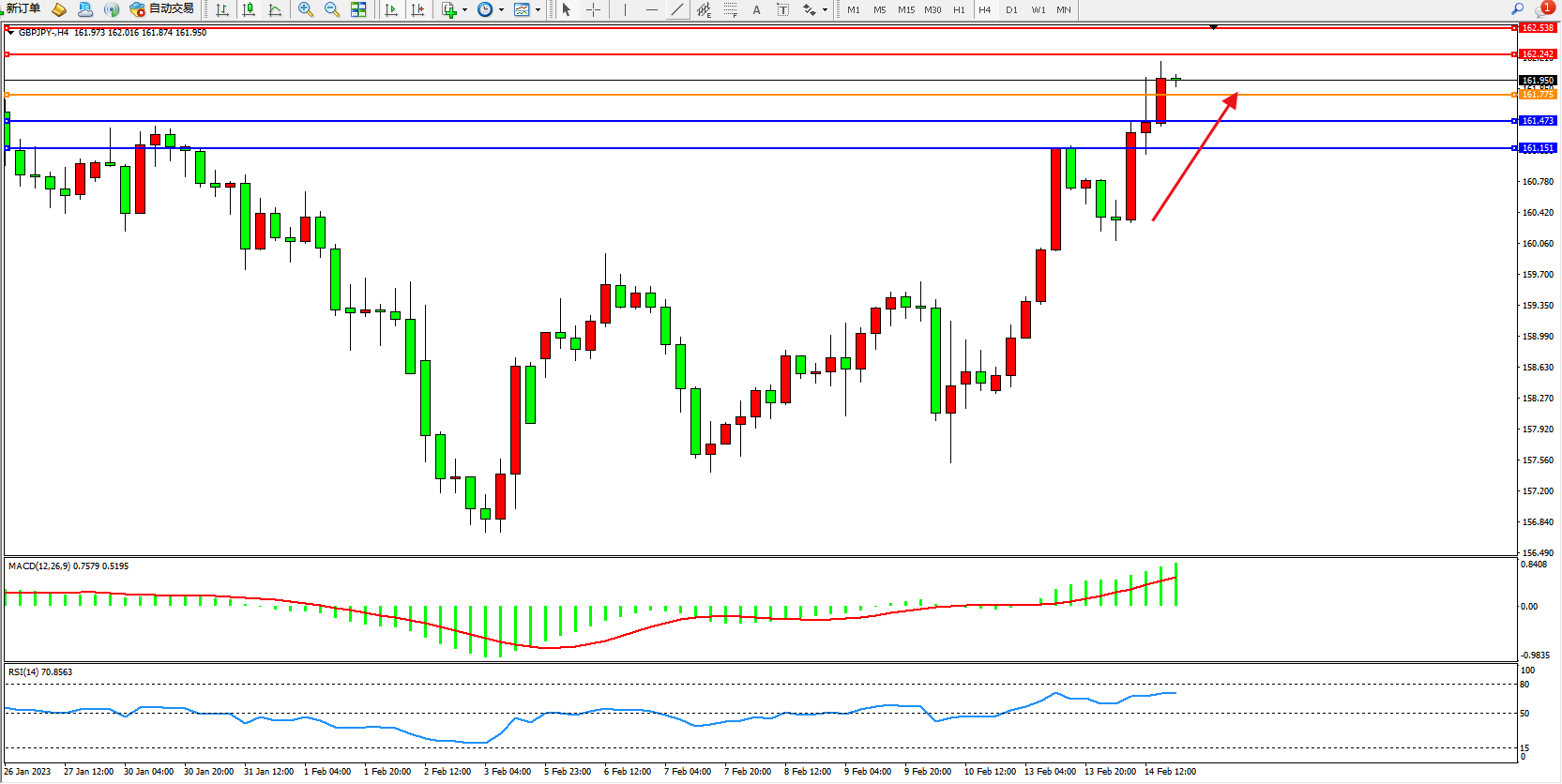 交易策略:161.775上方看涨,目标162.242、162.539
