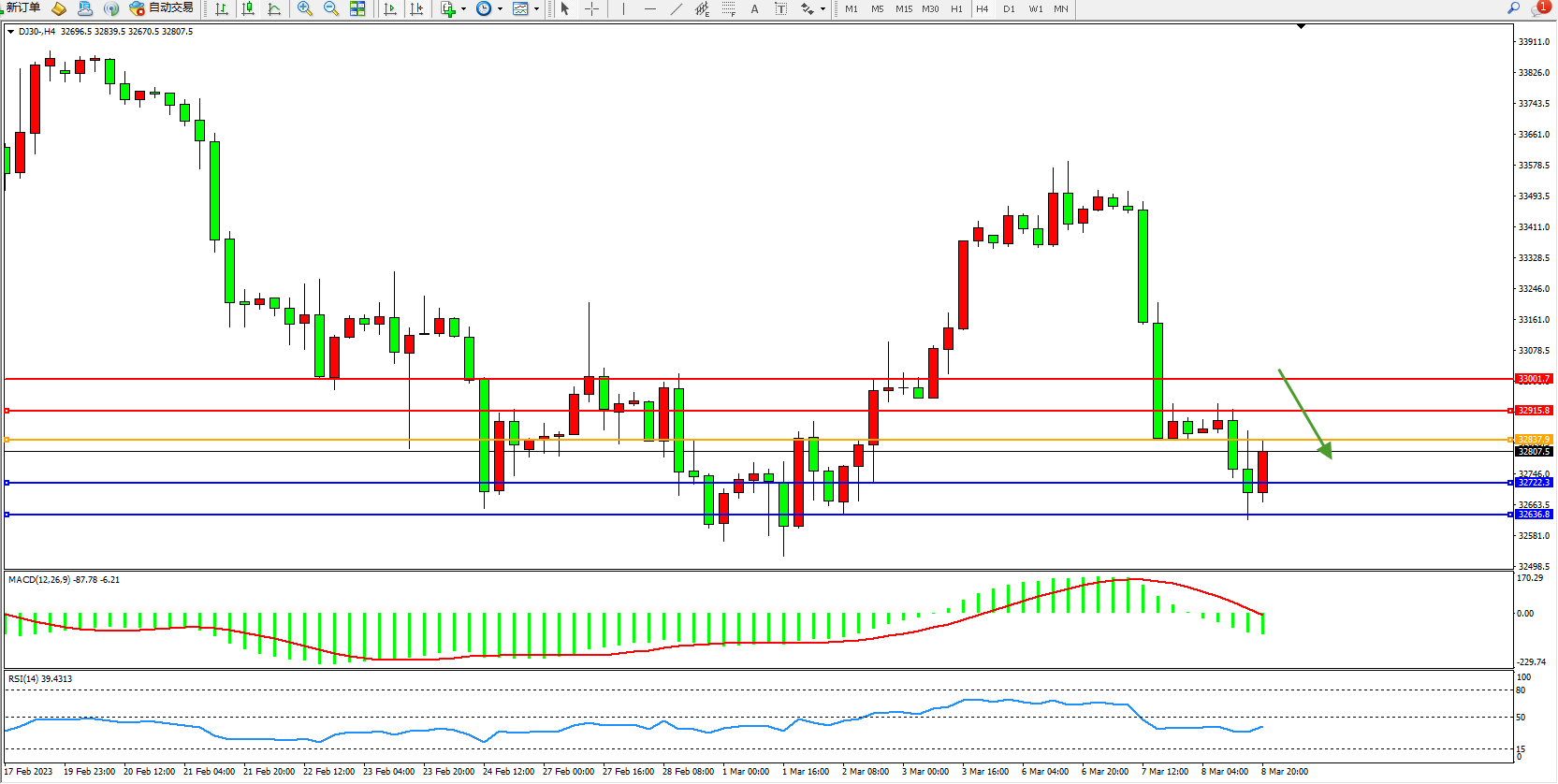 道琼斯指数3月8日(周三)收盘下跌57.93点,跌幅0.18%,报32798.53点;美国2月ADP就业人数 24.2万人,预期20万人,前值10.6万人,强于增加20万人的预期。