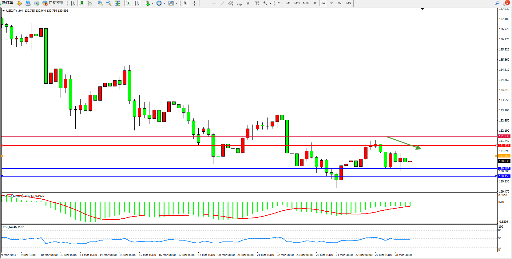 美元兑日圆维持130.836附近震荡,全面银行业危机的担忧逐渐消退,削弱了避险资产的需求,传统上也是避风港的日元强劲反弹,日本的财政年度将在周五结束,日企可能将海外利润汇回国内。