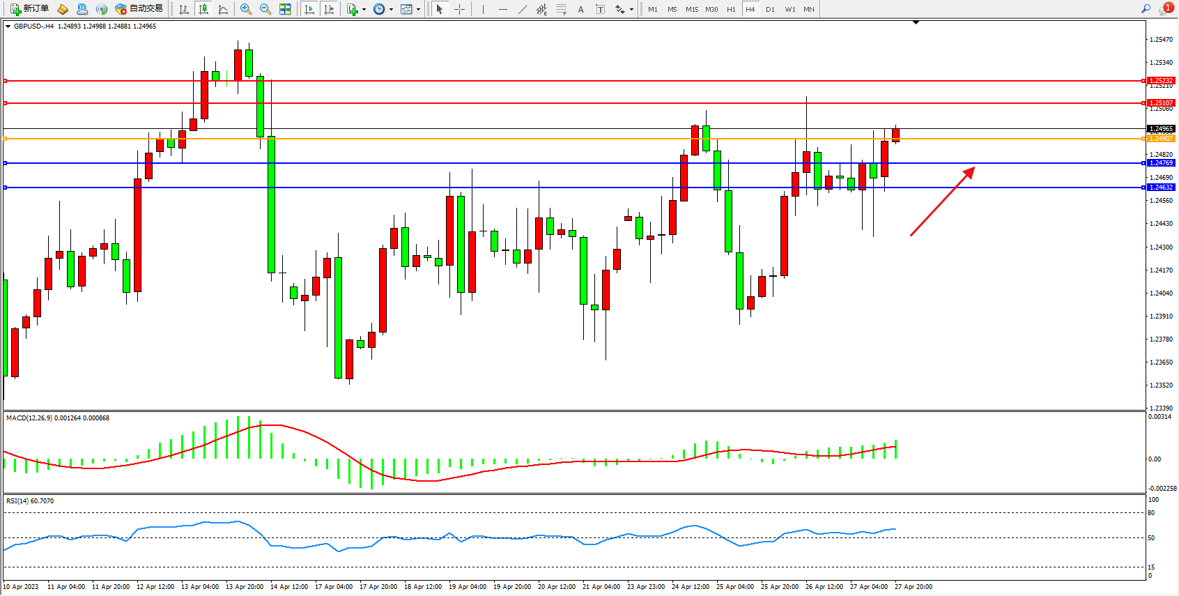 交易策略:1.24907上方看涨,目标1.25107  1.25232