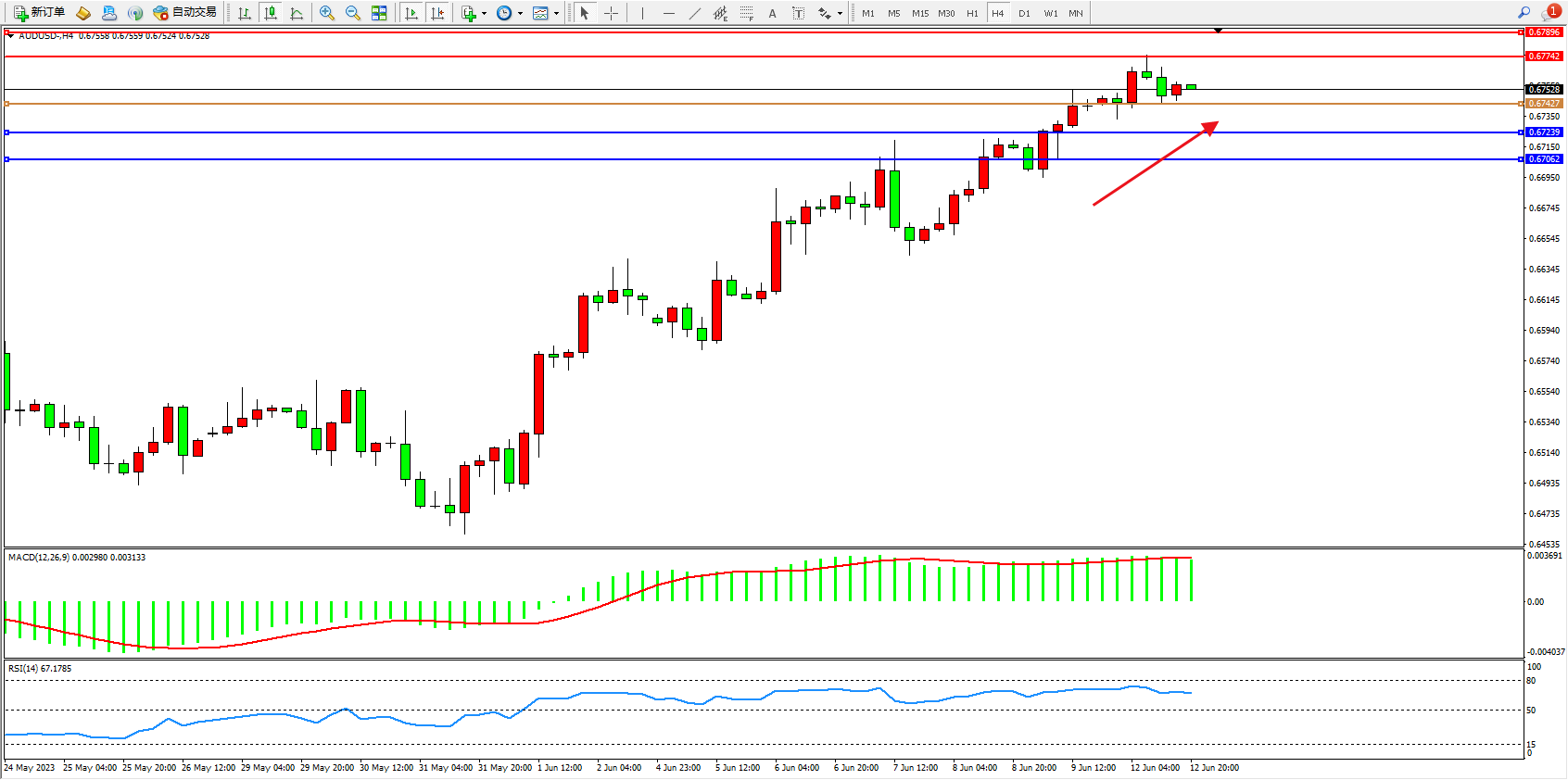 阻力位:0.67742  0.67896