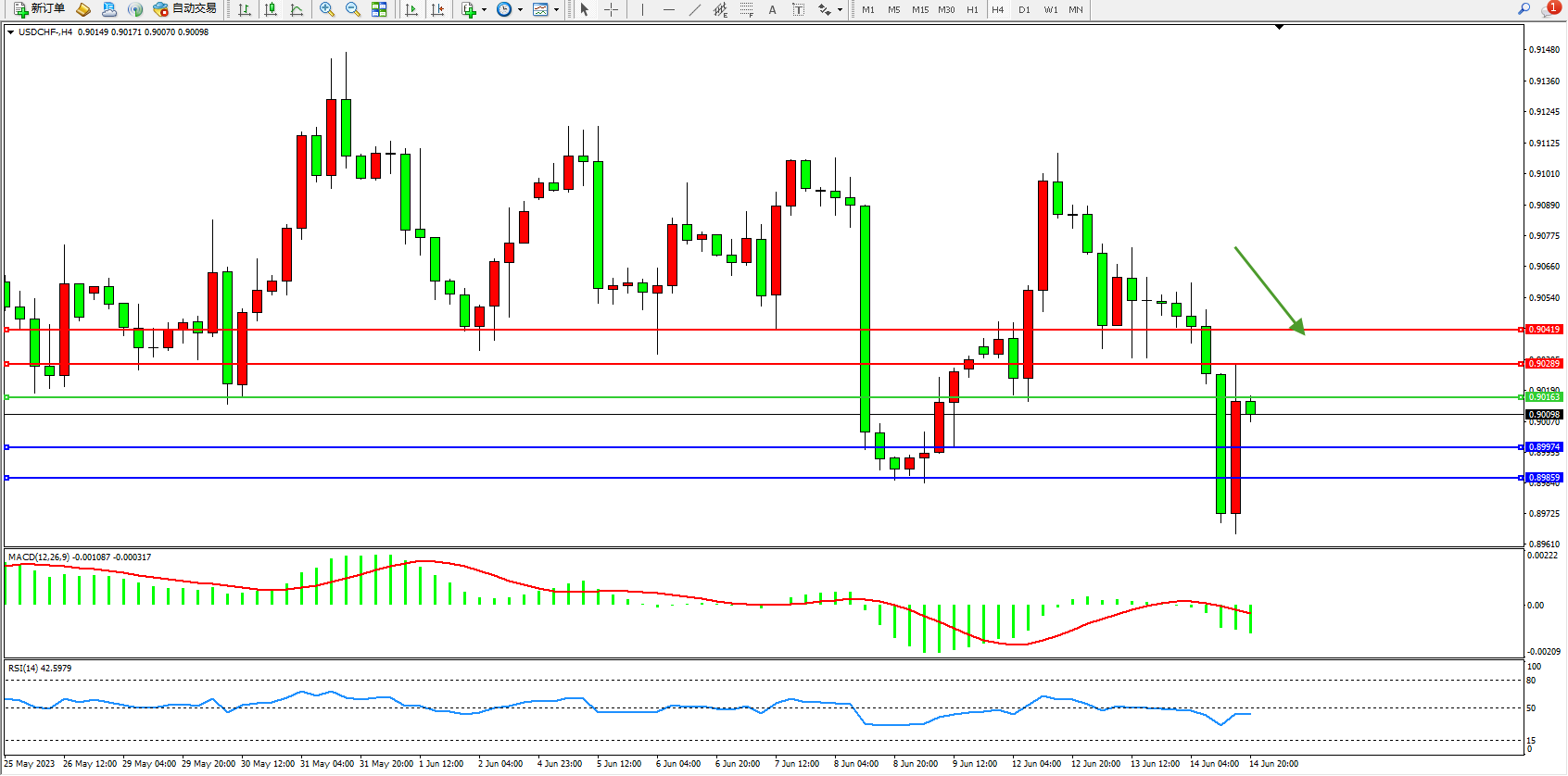 交易策略:0.90163下方看跌,目标0.89974 0.89859