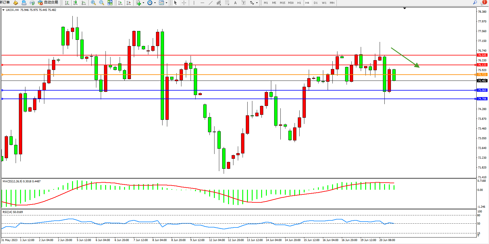4小时图看:短期窄幅震荡,市场空头情绪逐渐涌现,短期有继续震荡向下移动态势,MACD指标处于多头区域维持整理,RSI指标处于50均衡线附近弱势徘徊;