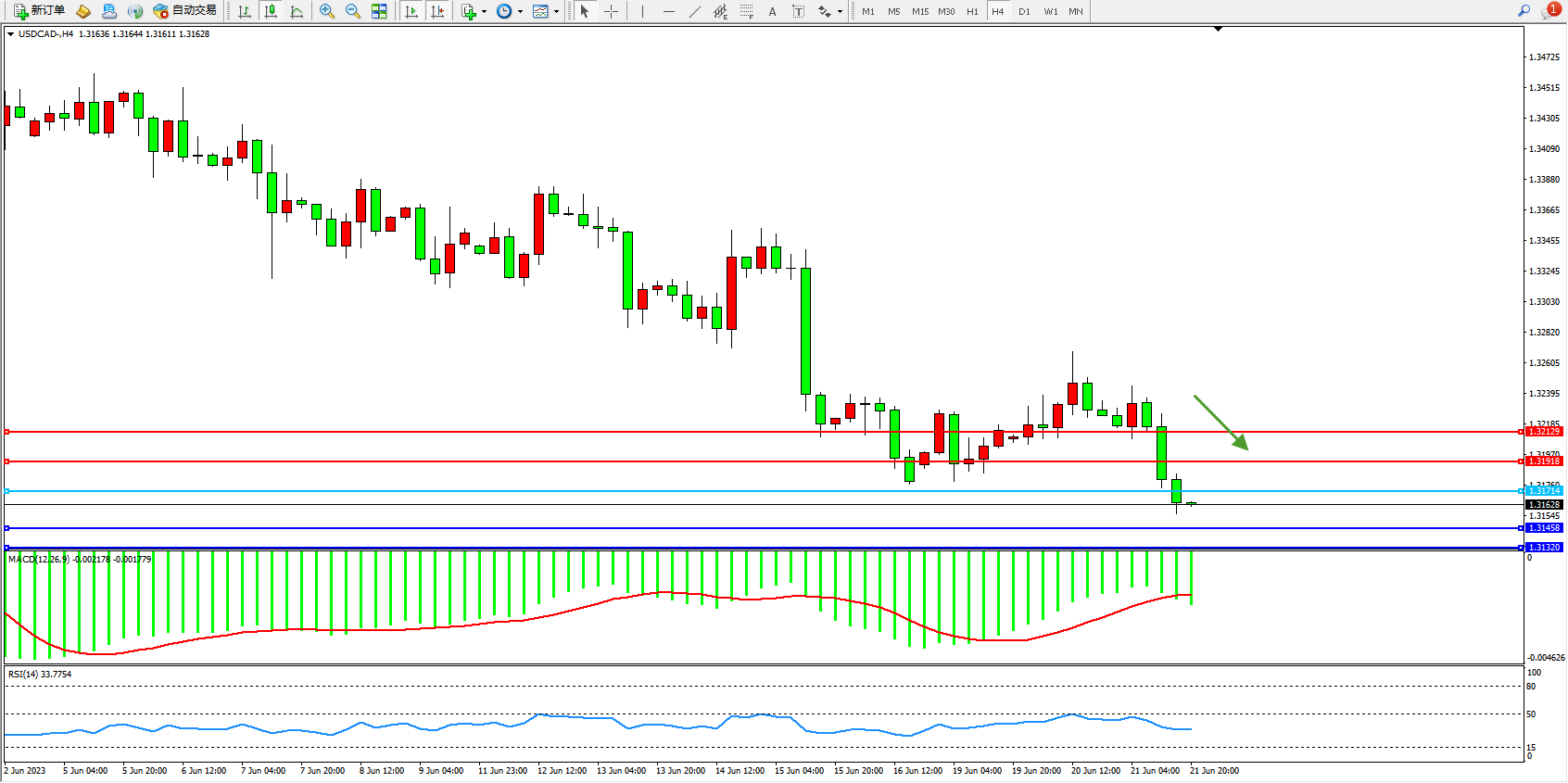 4小时图看:空头动力低位维持震荡下移,短期跌势未见止步,市场空头情绪持续,短期有继续向下移动态势,MACD指标处于空头区域维持震荡下移,RSI指标处于空头区域持续下行;