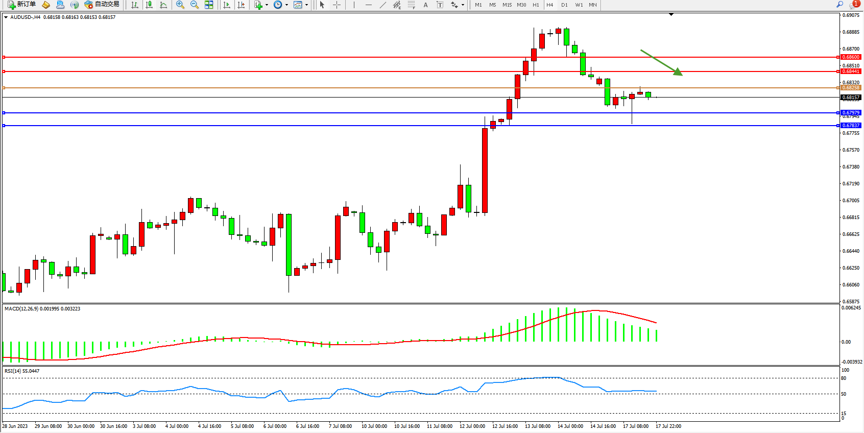 交易策略:0.68258下方看跌,目标0.67979  0.67837
